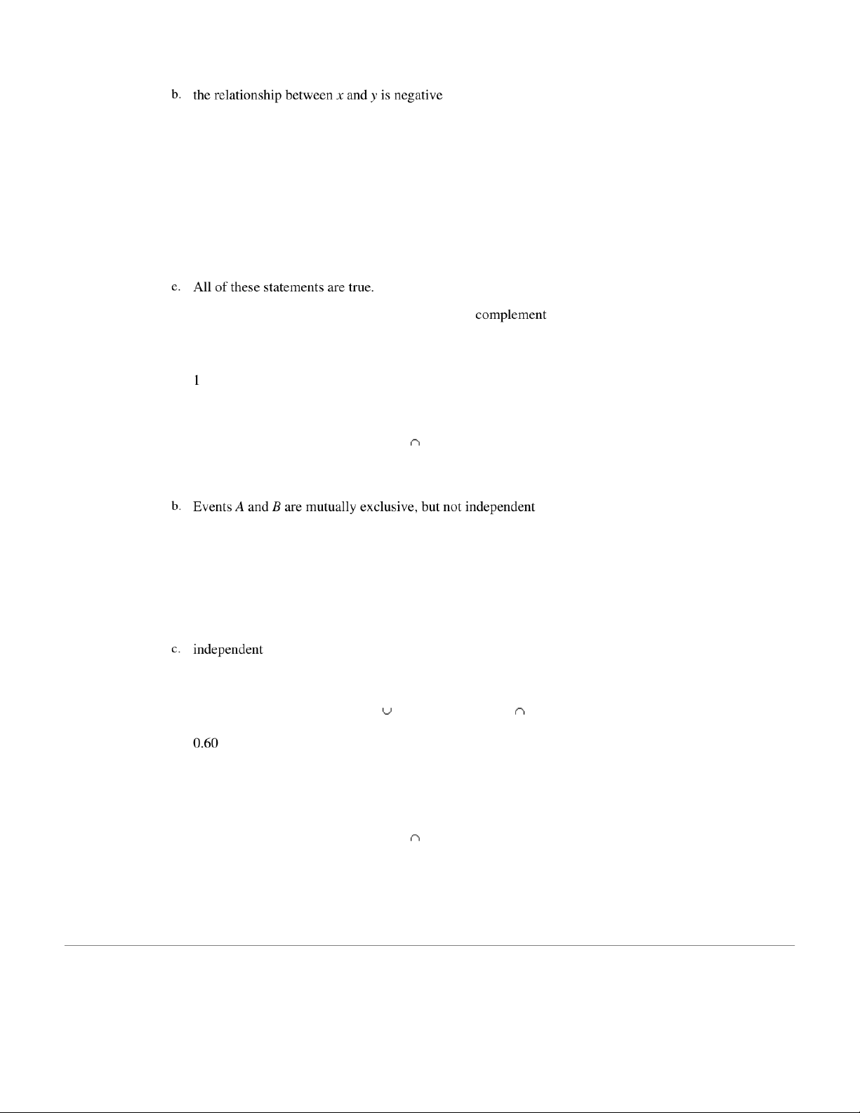 ____ 8. The probability of an event and the probability of its always sum to: đối a. –1 b. 0 c. d. any value between 0 and 1 e. 0.5 mutually exclusive