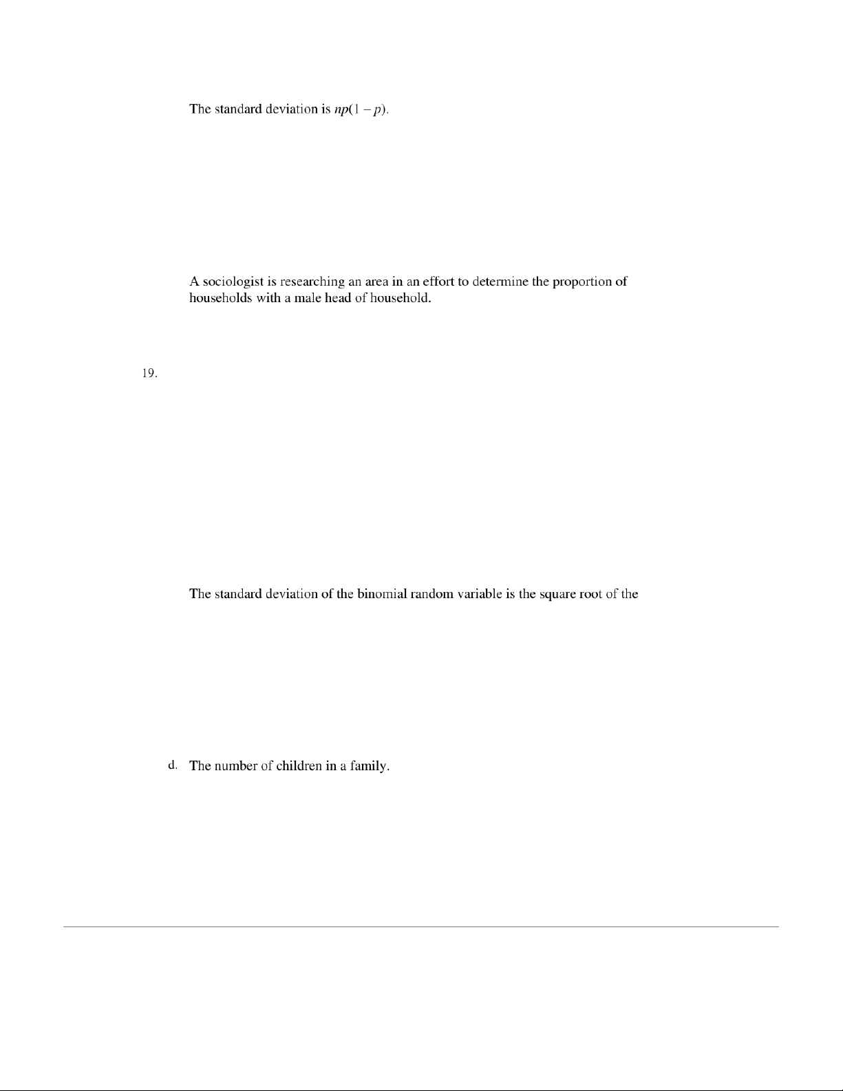 ____ 20. Which of the following is not a characteristic of a binomial experiment?