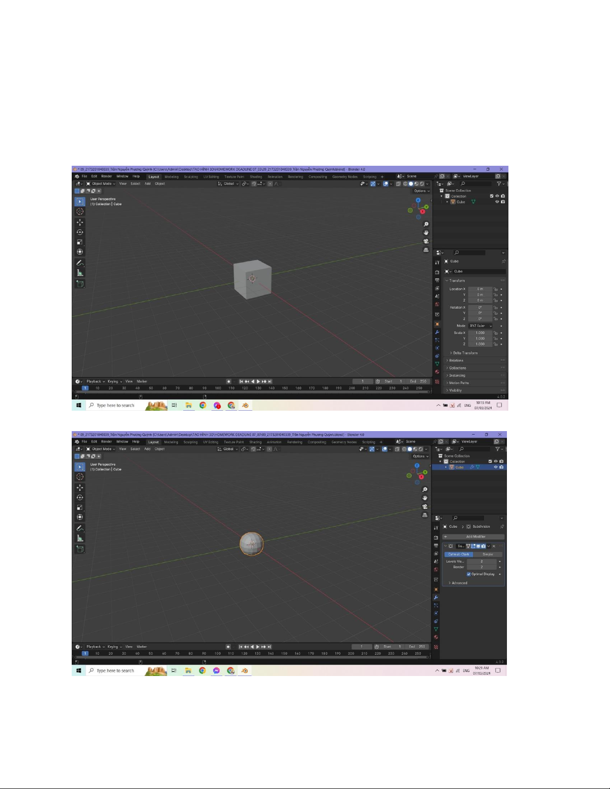 Modifiers -> Add Modifier -> Subdivision Surface -> Level Viewport: 2 -> apply lOMoARcPSD| 60380256 LHP: 232_71MODE40473_09 MSSV: 217320104039