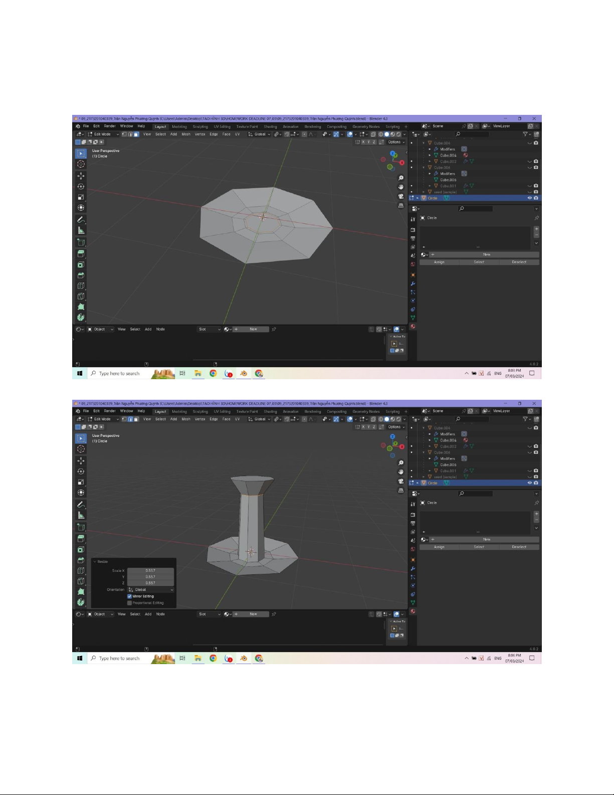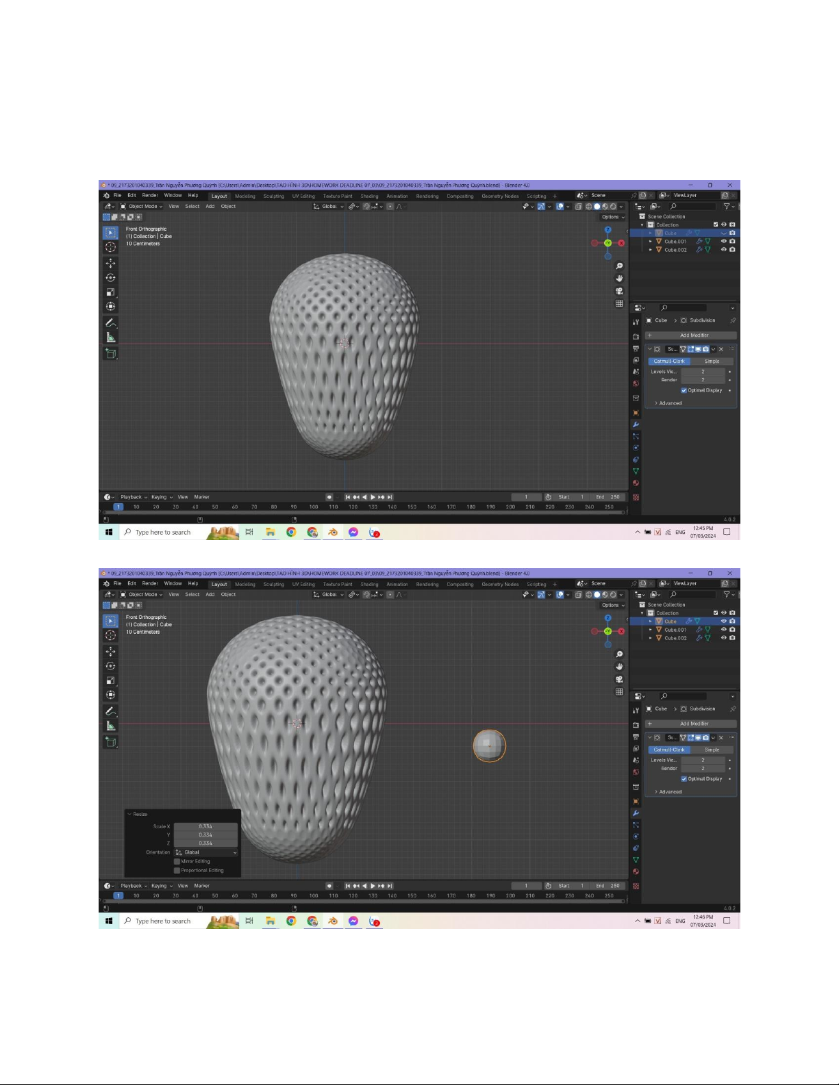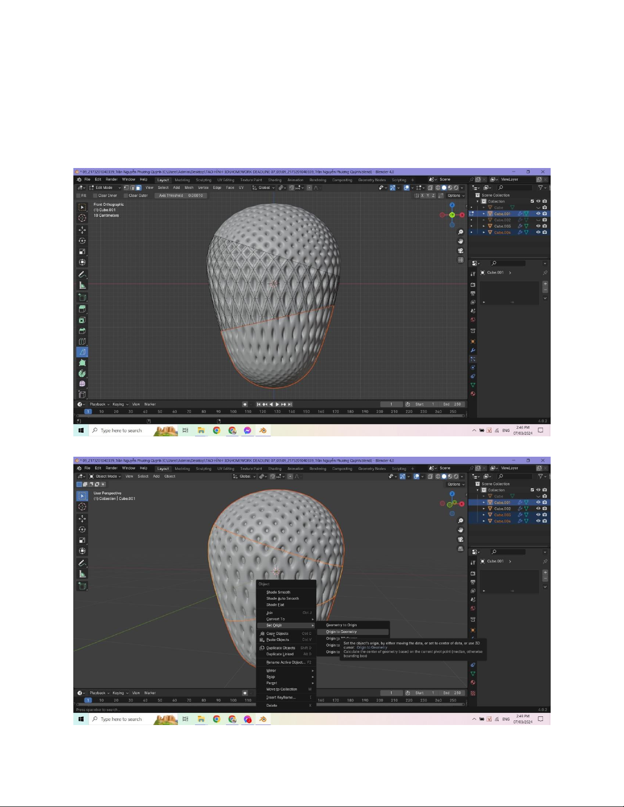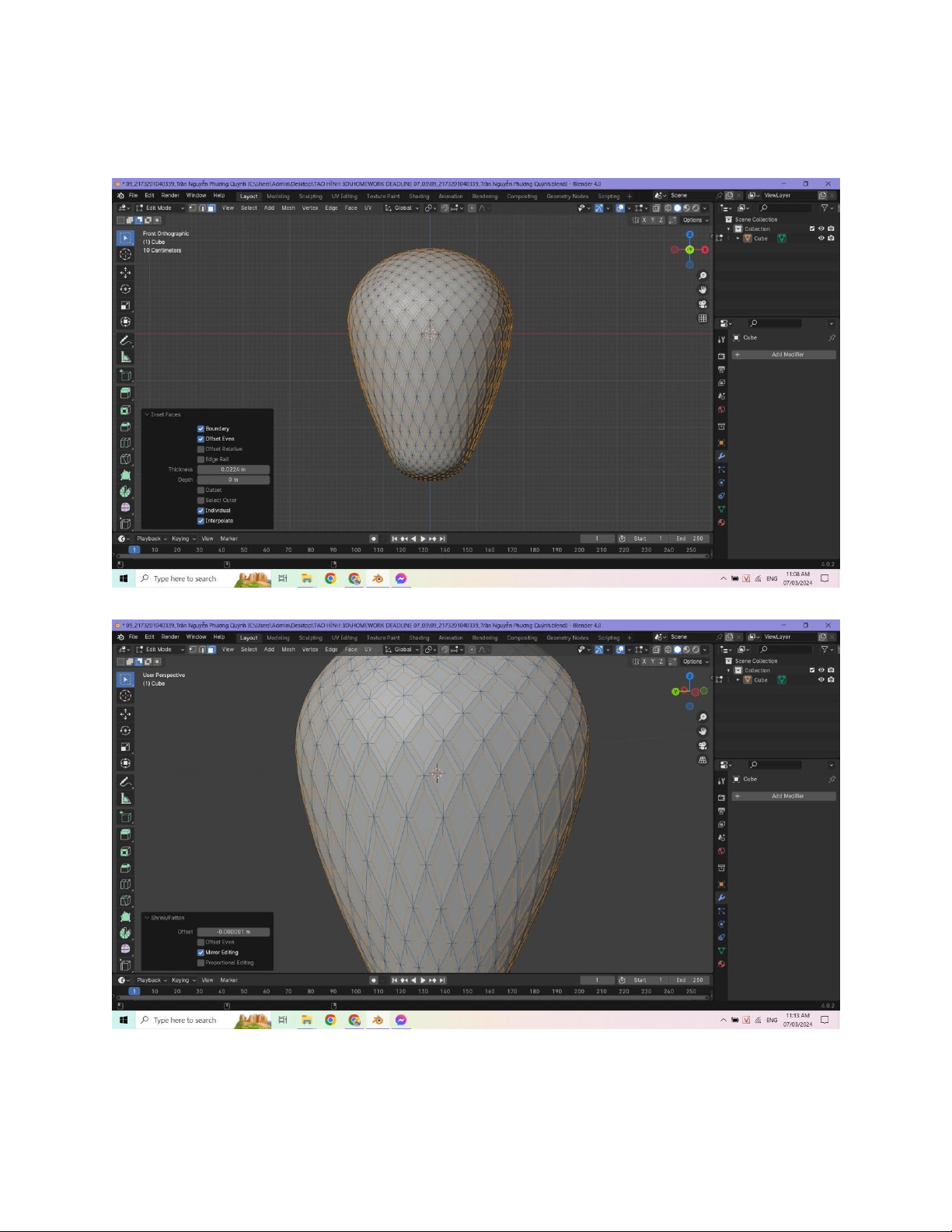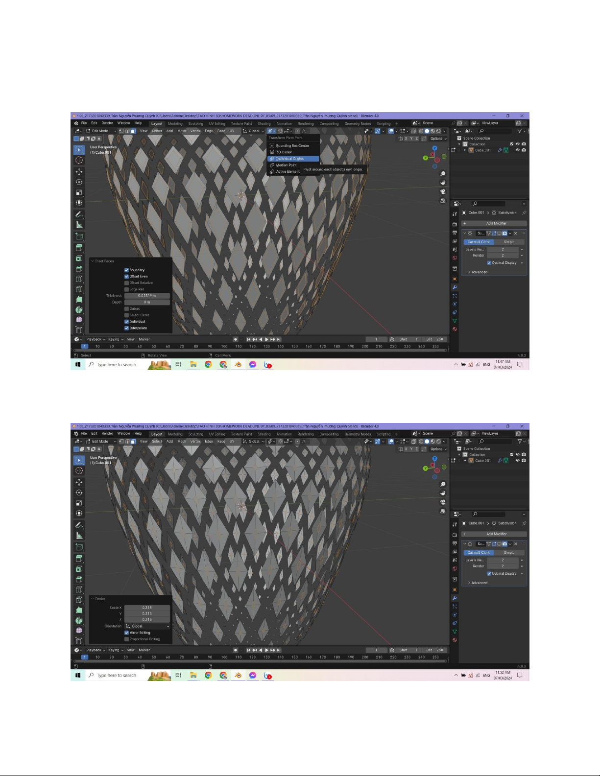 Double I (để Inset mặt phẳng vừa chọn) -> transform pivot points -> individual origins Scale nhỏ lại: S lOMoARcPSD| 60380256 LHP: 232_71MODE40473_09 MSSV: 217320104039