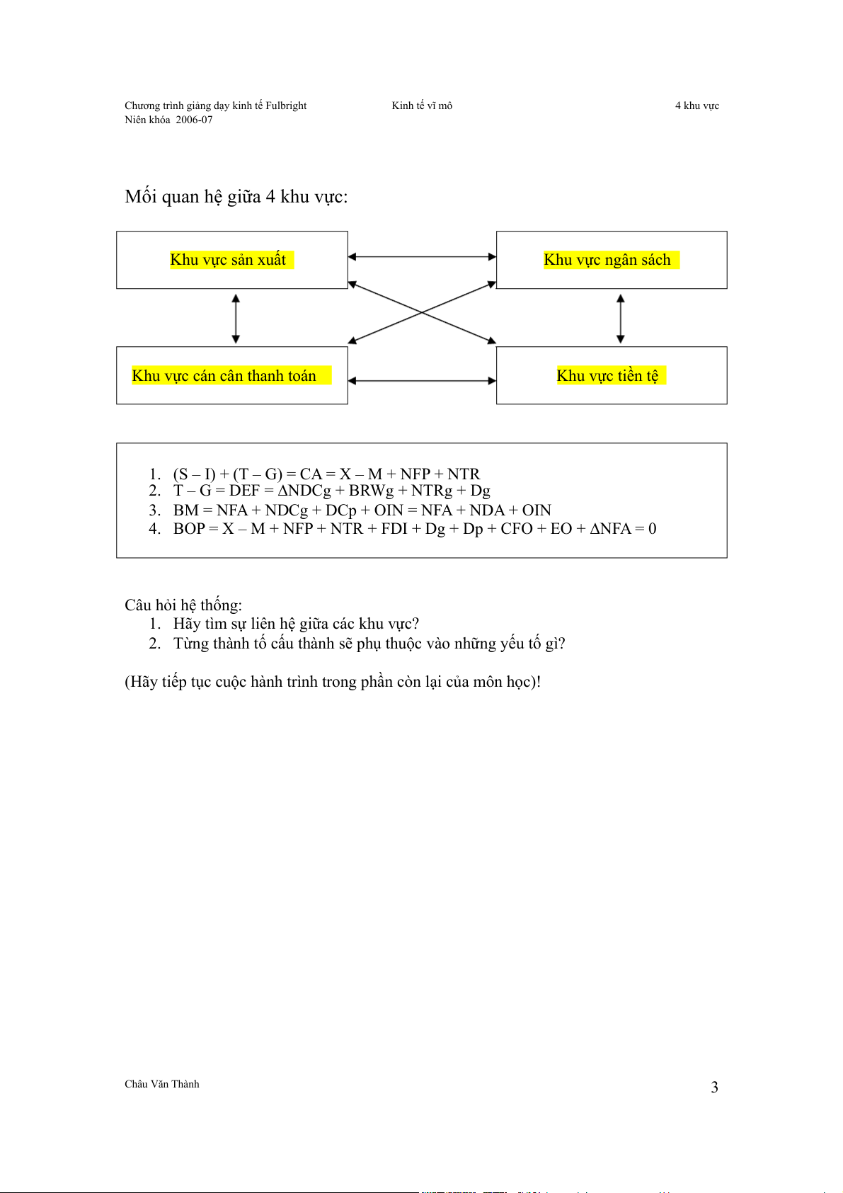 Chương trình giảng dạy kinh tế Fulbright Kinh tế vĩ mô 4 khu vực Niên khóa 2006-07