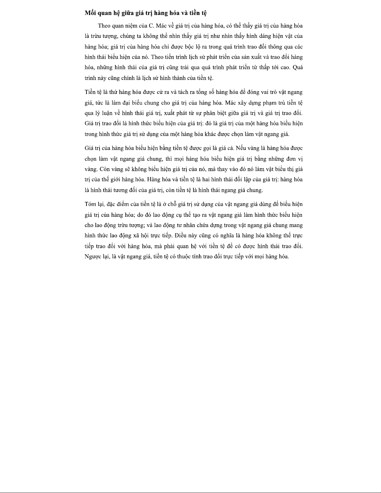 Mối quan hệ giữa giá trị hàng hóa và tiền tệ trong lý thuyết Mác