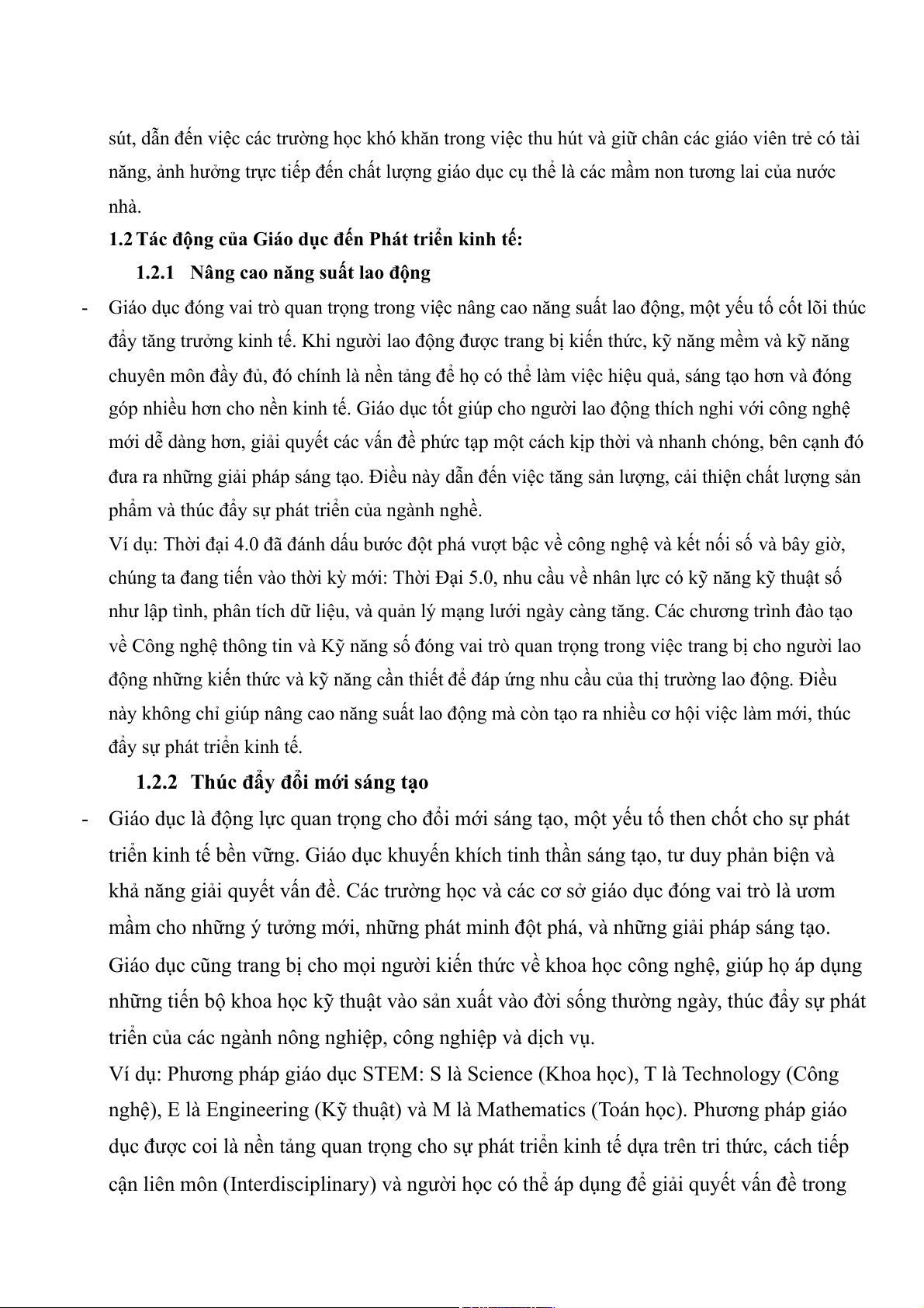 1.2 Tác động của Giáo dục đến Phát triển kinh tế: