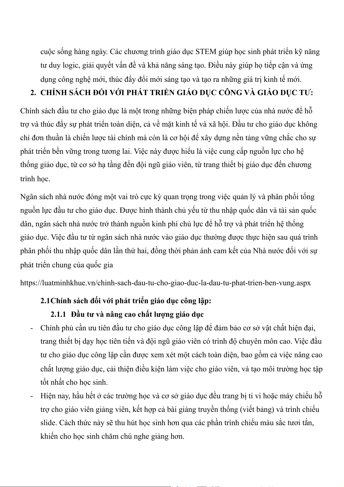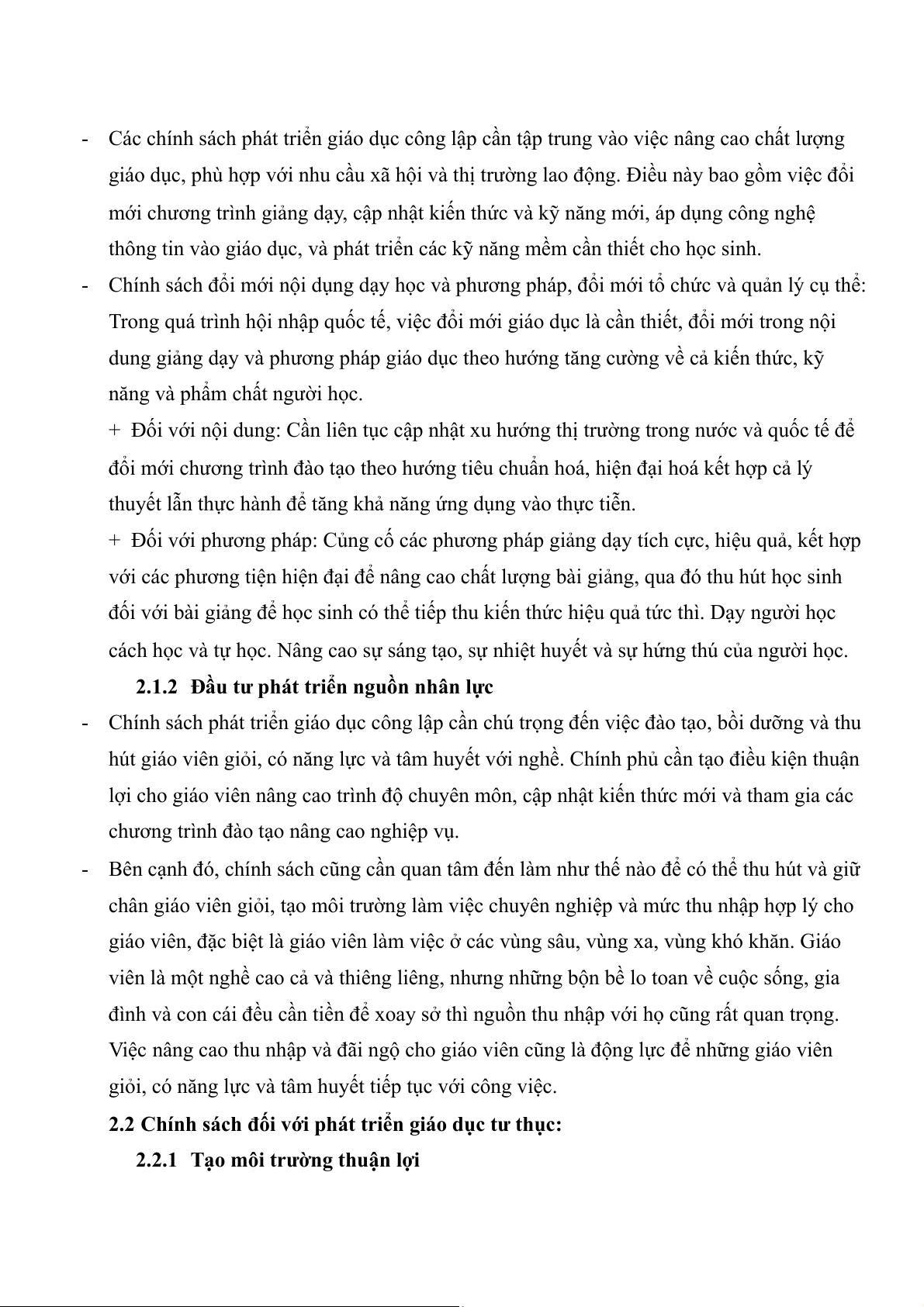 2. CHÍNH SÁCH ĐỐI VỚI PHÁT TRIỂN GIÁO DỤC CÔNG VÀ GIÁO DỤC TƯ: