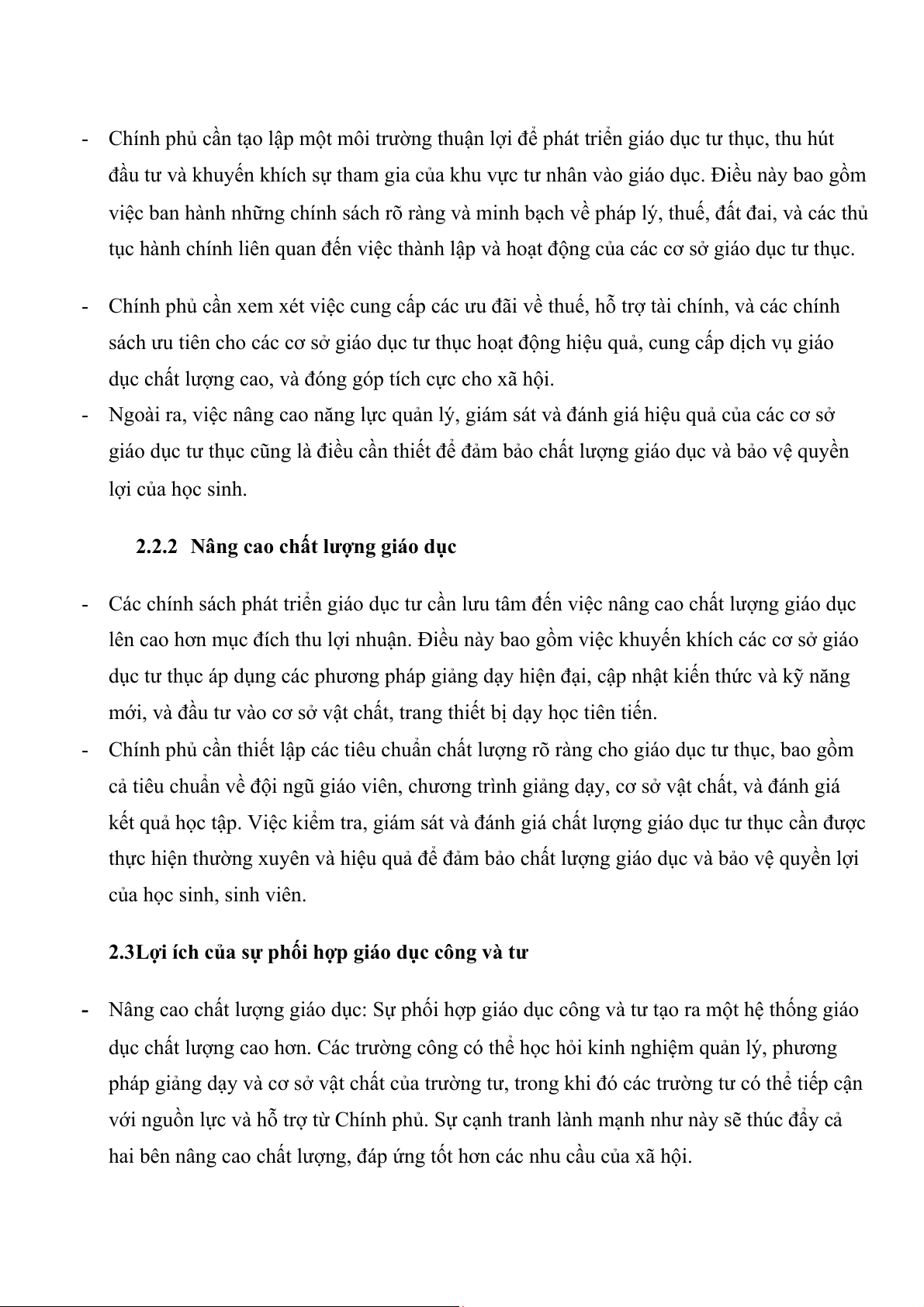 - Chính phủ cần thiết lập các tiêu chuẩn chất lượng rõ ràng cho giáo dục tư thục, bao gồm