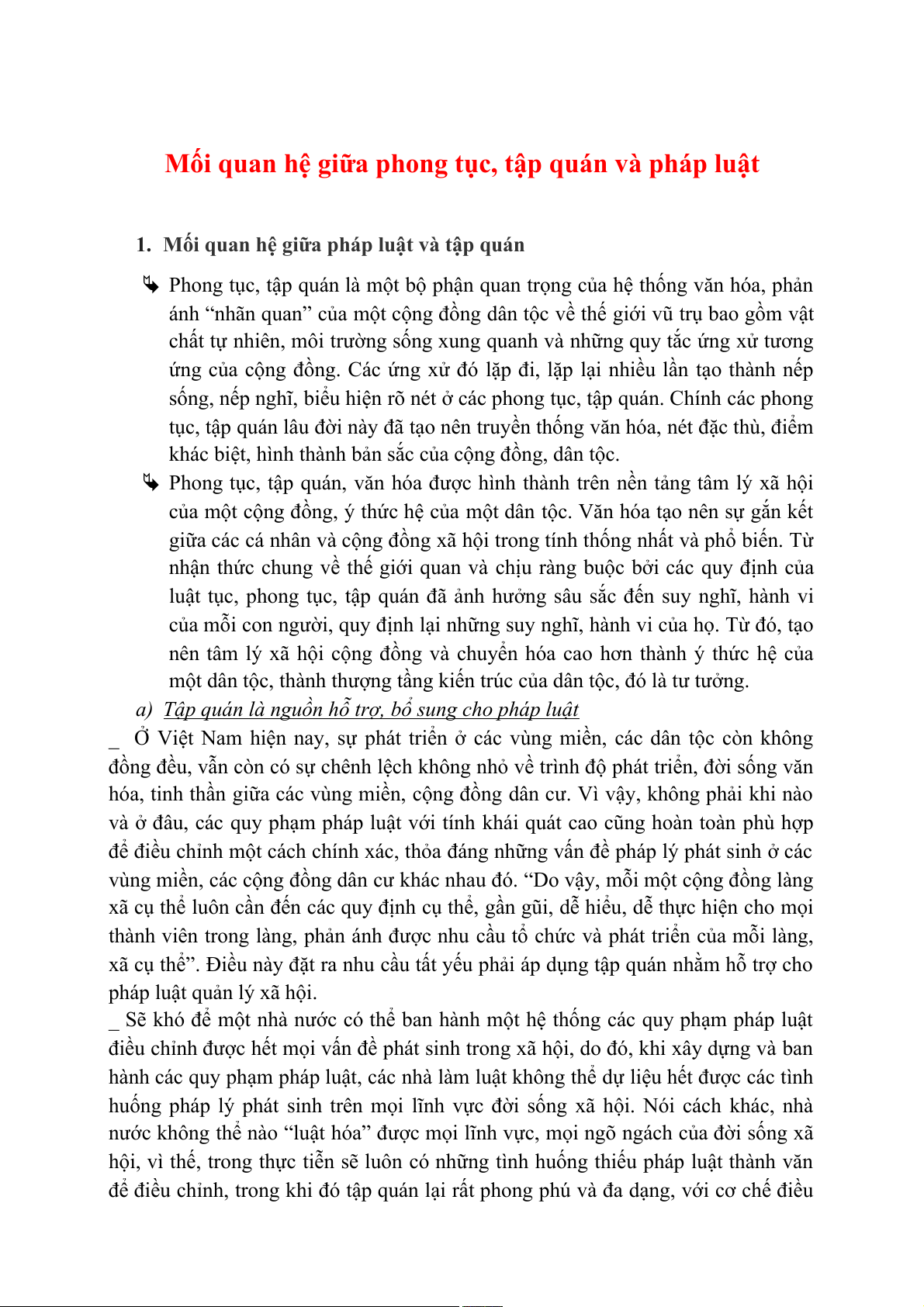 Mối quan hệ giữa pháp luật và tập quán.........................................................................................1 a)