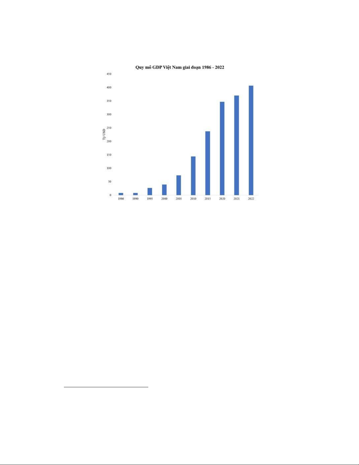 Quy mô GDP Việt Nam giai đoạn 1986 - 2022. Nguồn: Quỹ Tiền tệ Quốc tế (IMF)