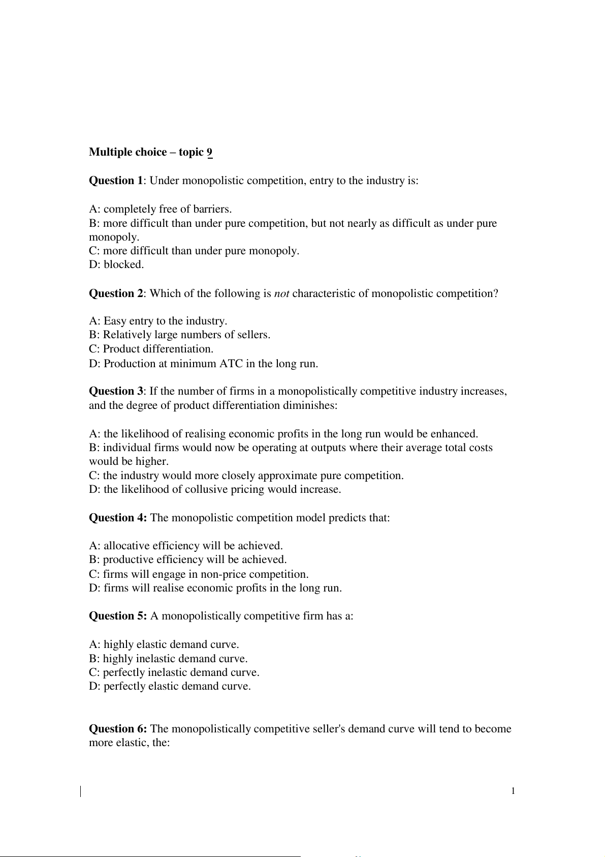 Question 2: Which of the following is not characteristic of monopolistic competition?