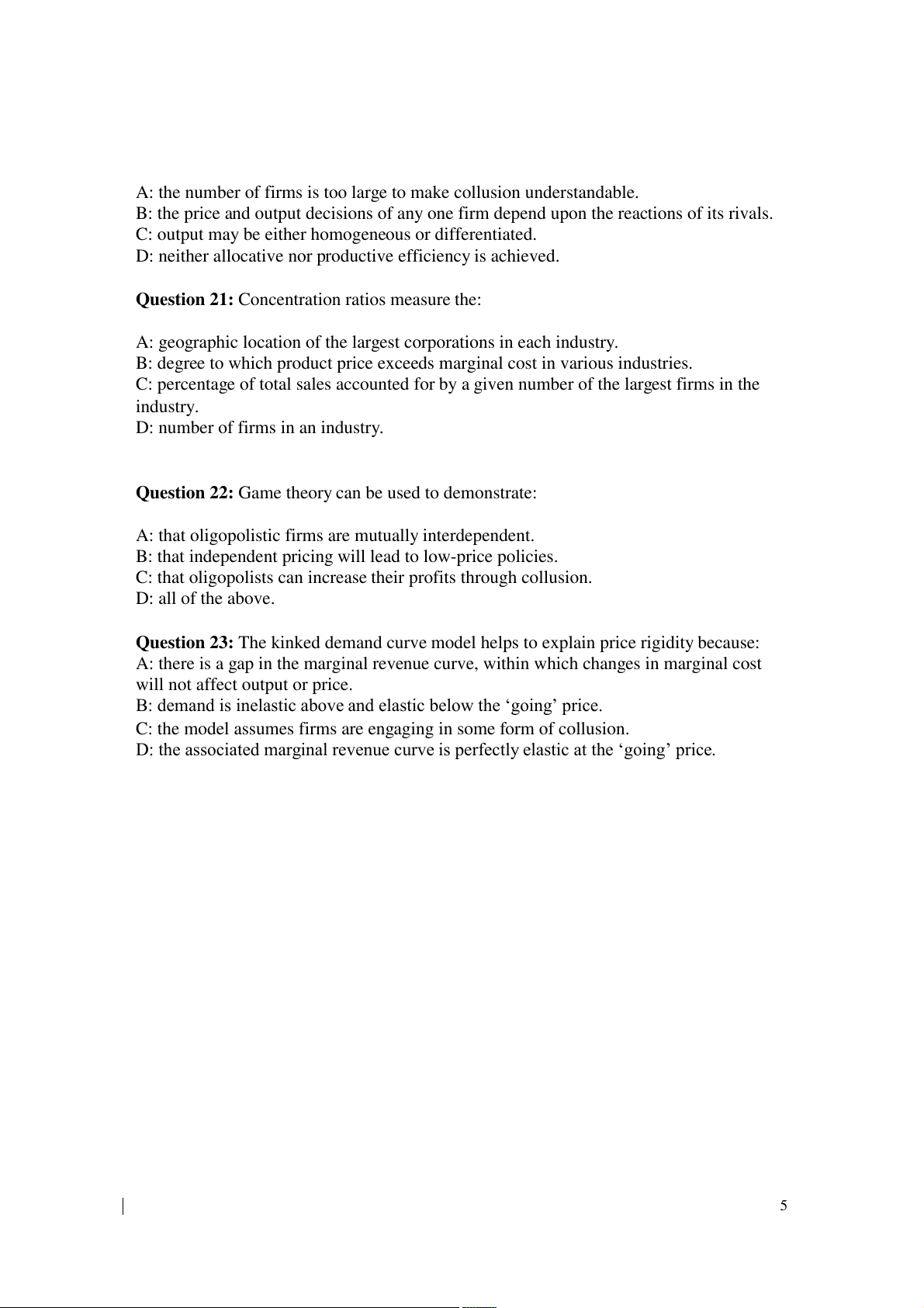 D: the associated marginal revenue curve is perfectly elastic at the ‘going’ price. 5