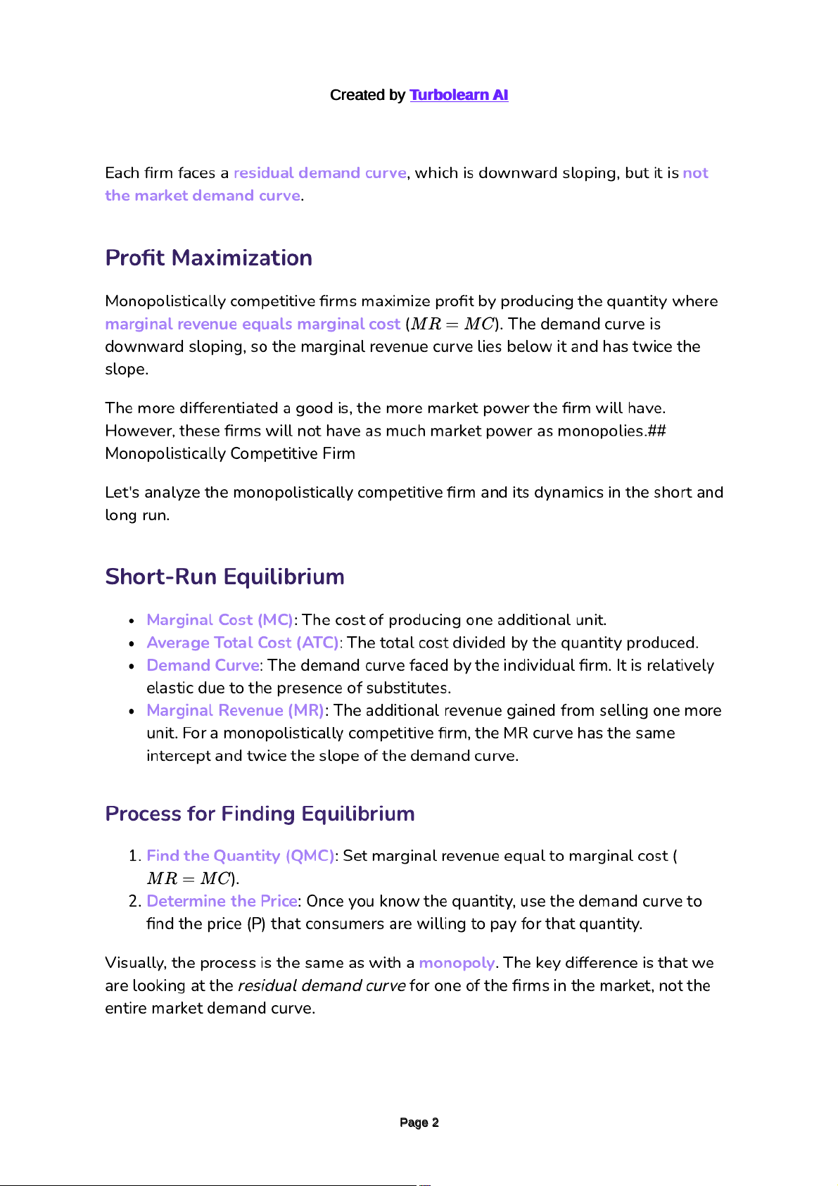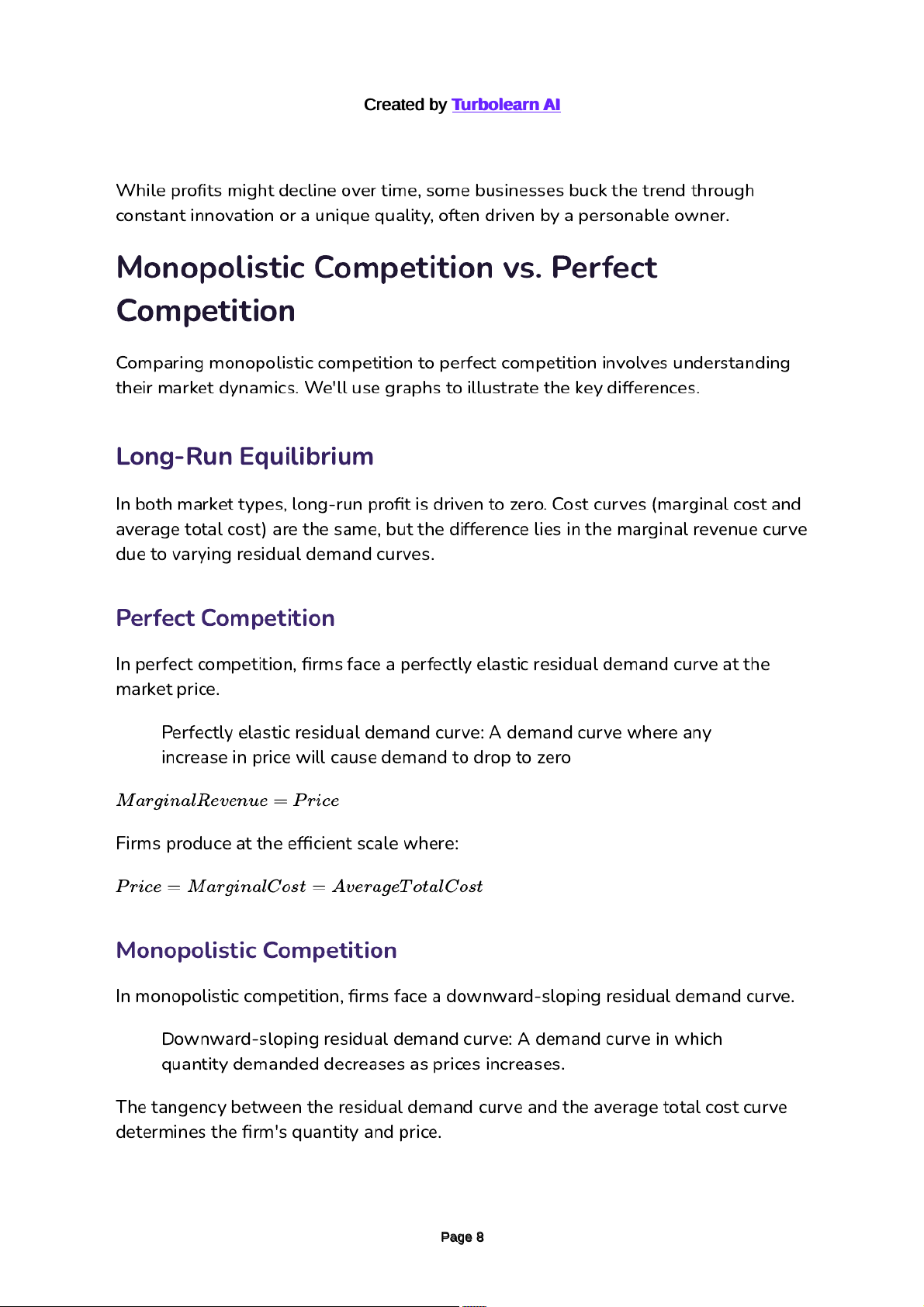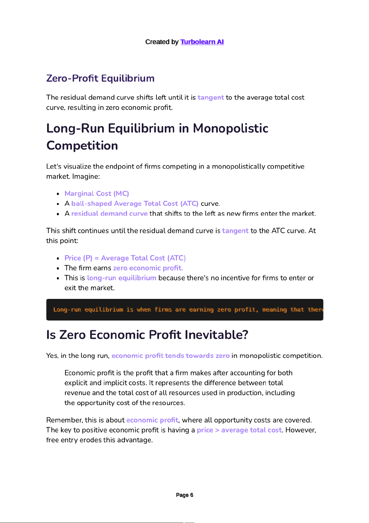 Long-run equilibrium is when firms are earning zero profit, meaning that there Page 6 Created by Turbolearn AI Page 7 Created by Turbolearn AI Page 8 Created by Turbolearn AI Page 9 Created by Turbolearn AI Page 10 Created by Turbolearn AI Page 11