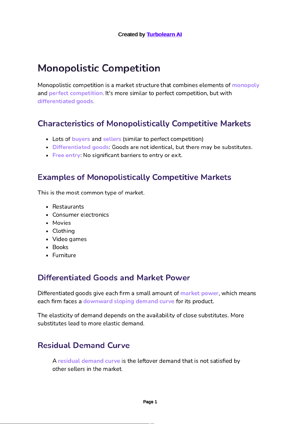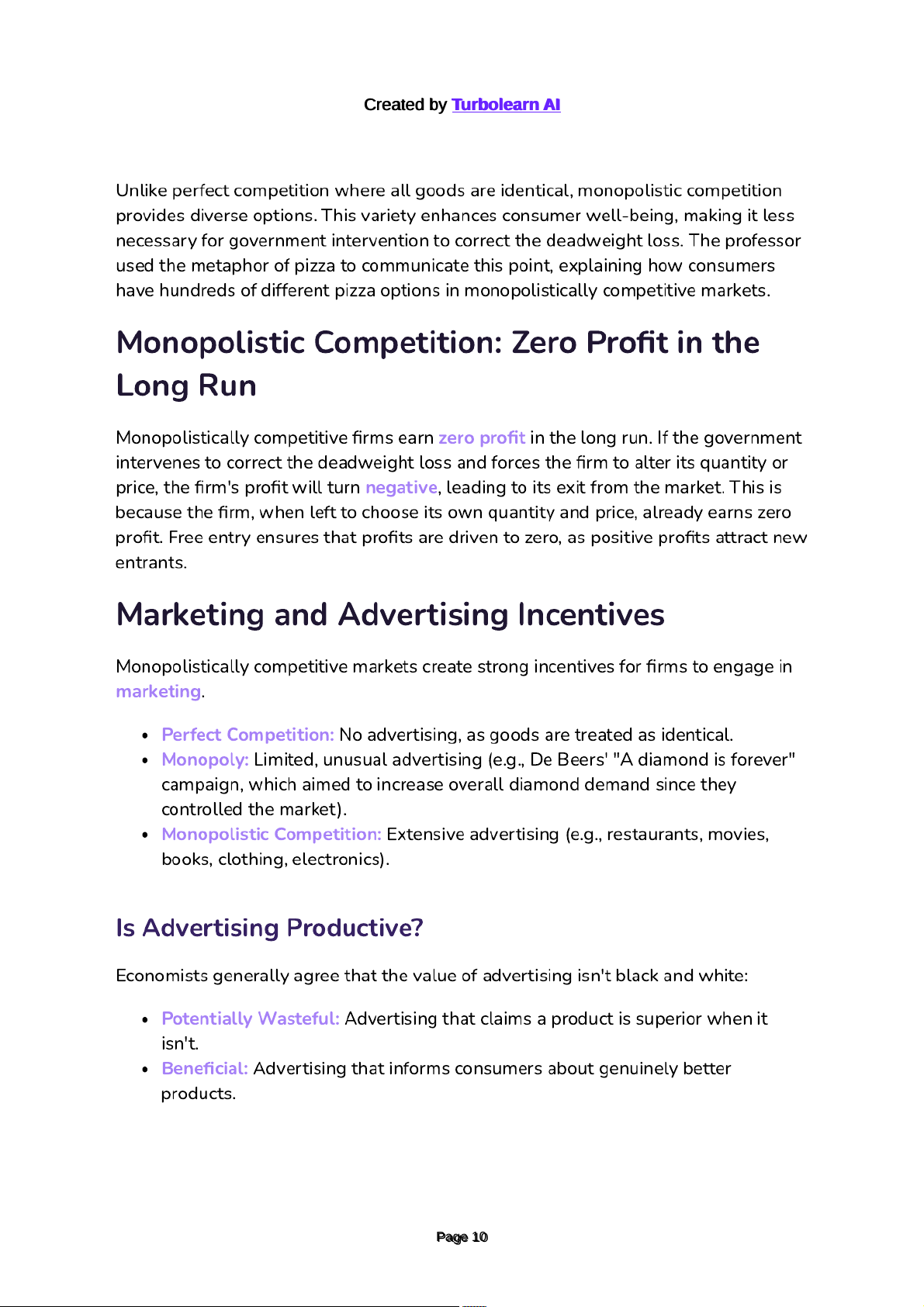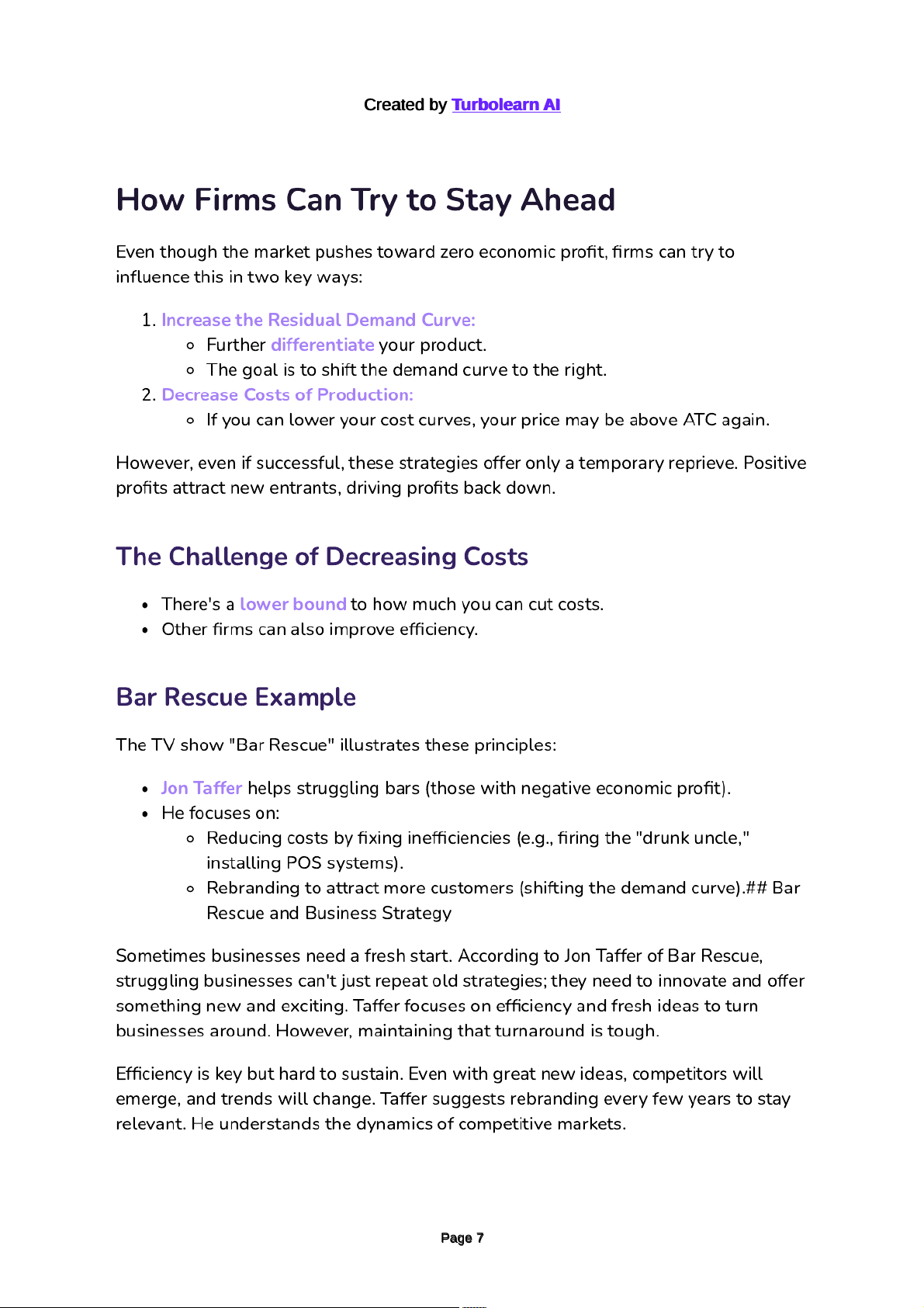 Long-run equilibrium is when firms are earning zero profit, meaning that there Page 6 Created by Turbolearn AI Page 7 Created by Turbolearn AI Page 8 Created by Turbolearn AI Page 9 Created by Turbolearn AI Page 10 Created by Turbolearn AI Page 11