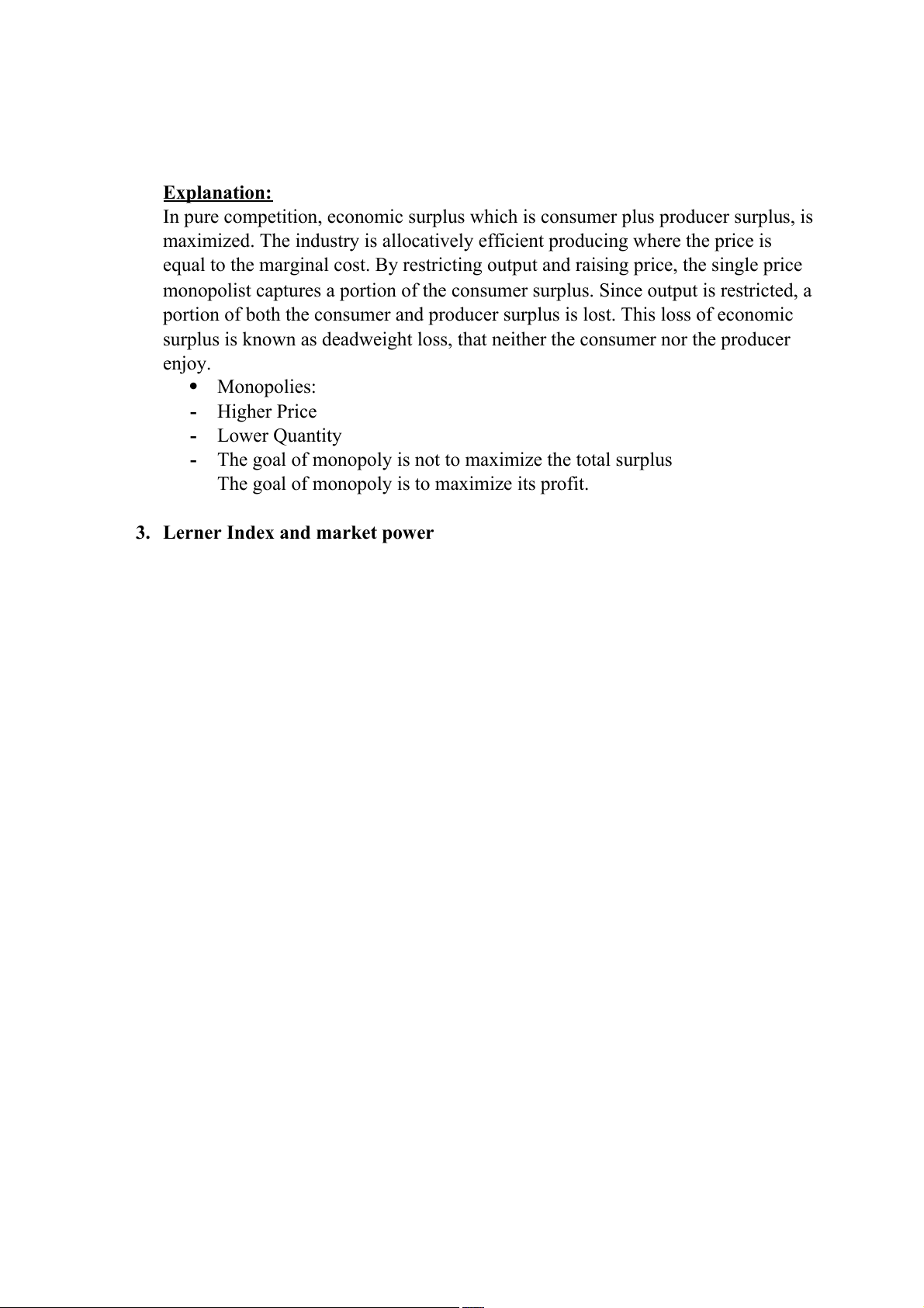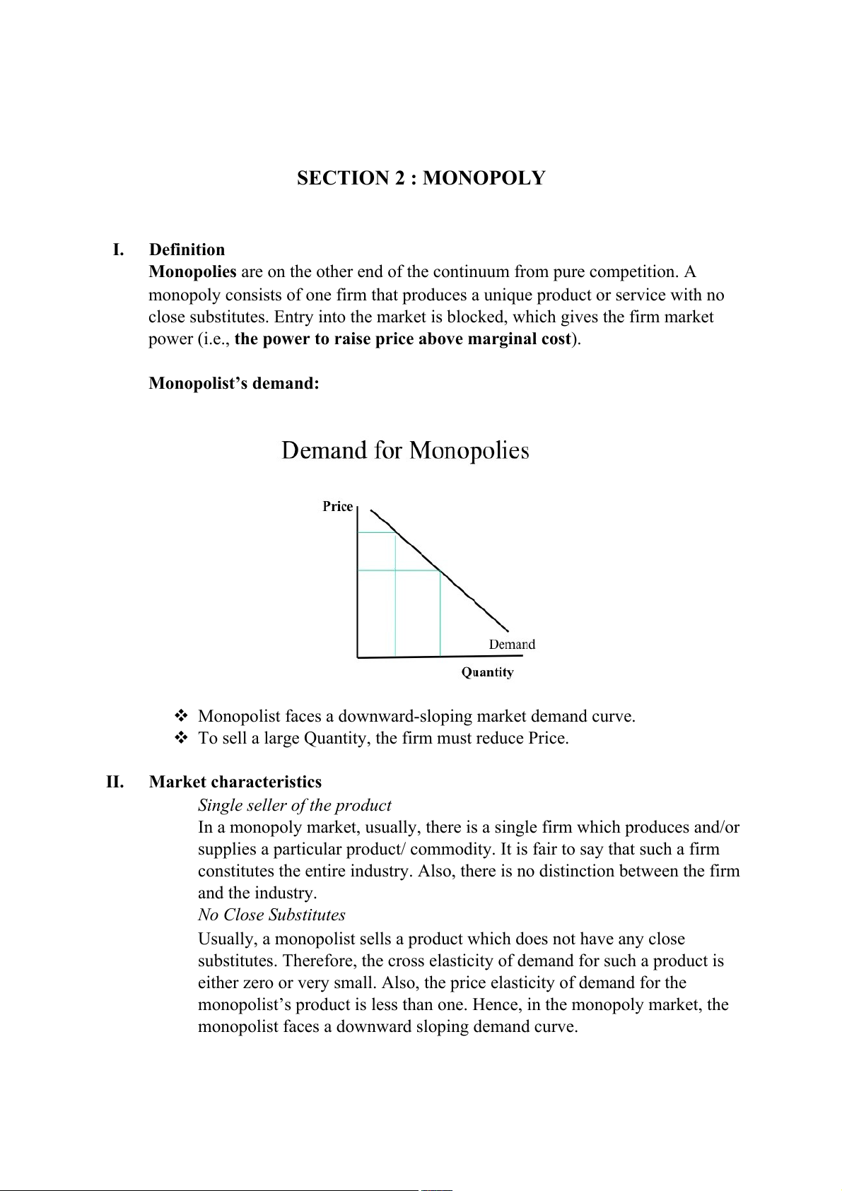 monopolist’s product is less than one. Hence, in the monopoly market, the