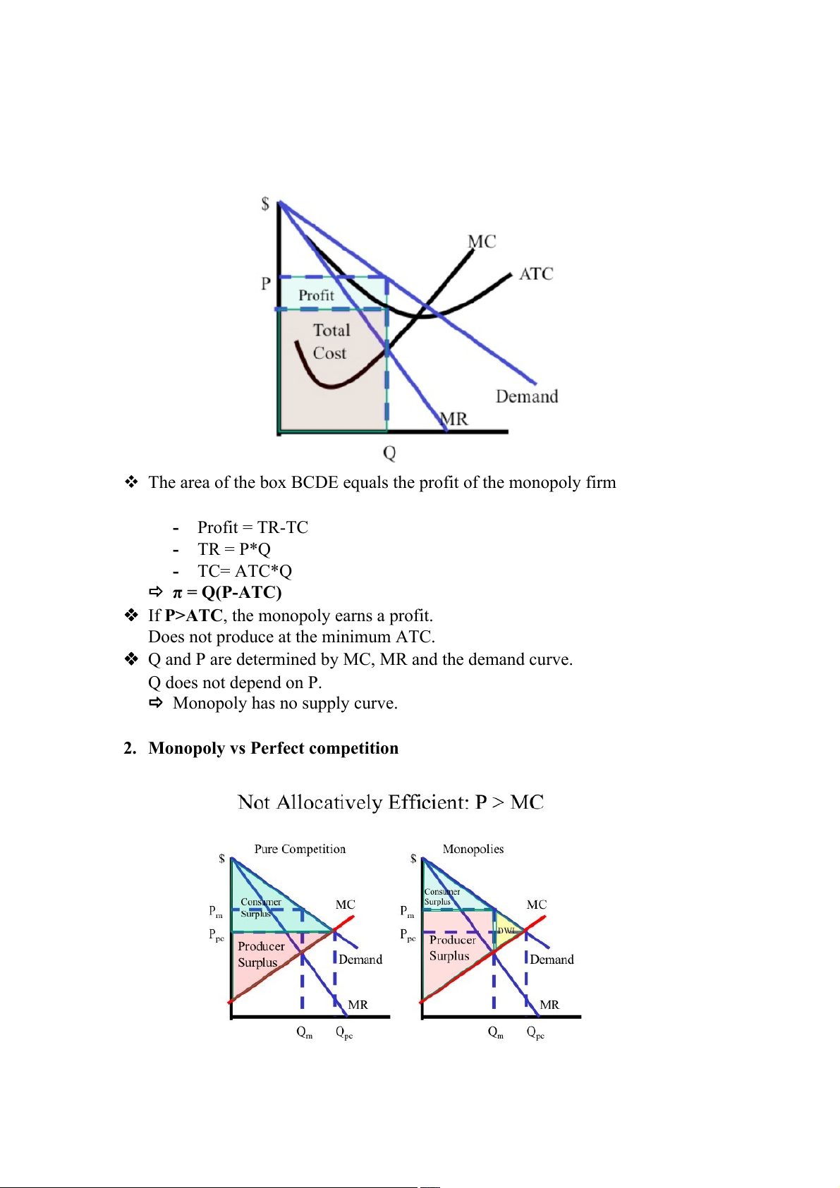 The area of the box BCDE equals the profit of the monopoly firm - Profit = TR-TC - TR = P*Q - TC= ATC*Q π = Q(P-ATC) If
