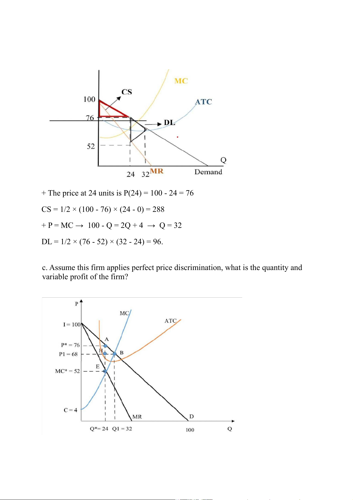 c. Assume this firm applies perfect price discrimination, what is the quantity and variable profit of the firm?