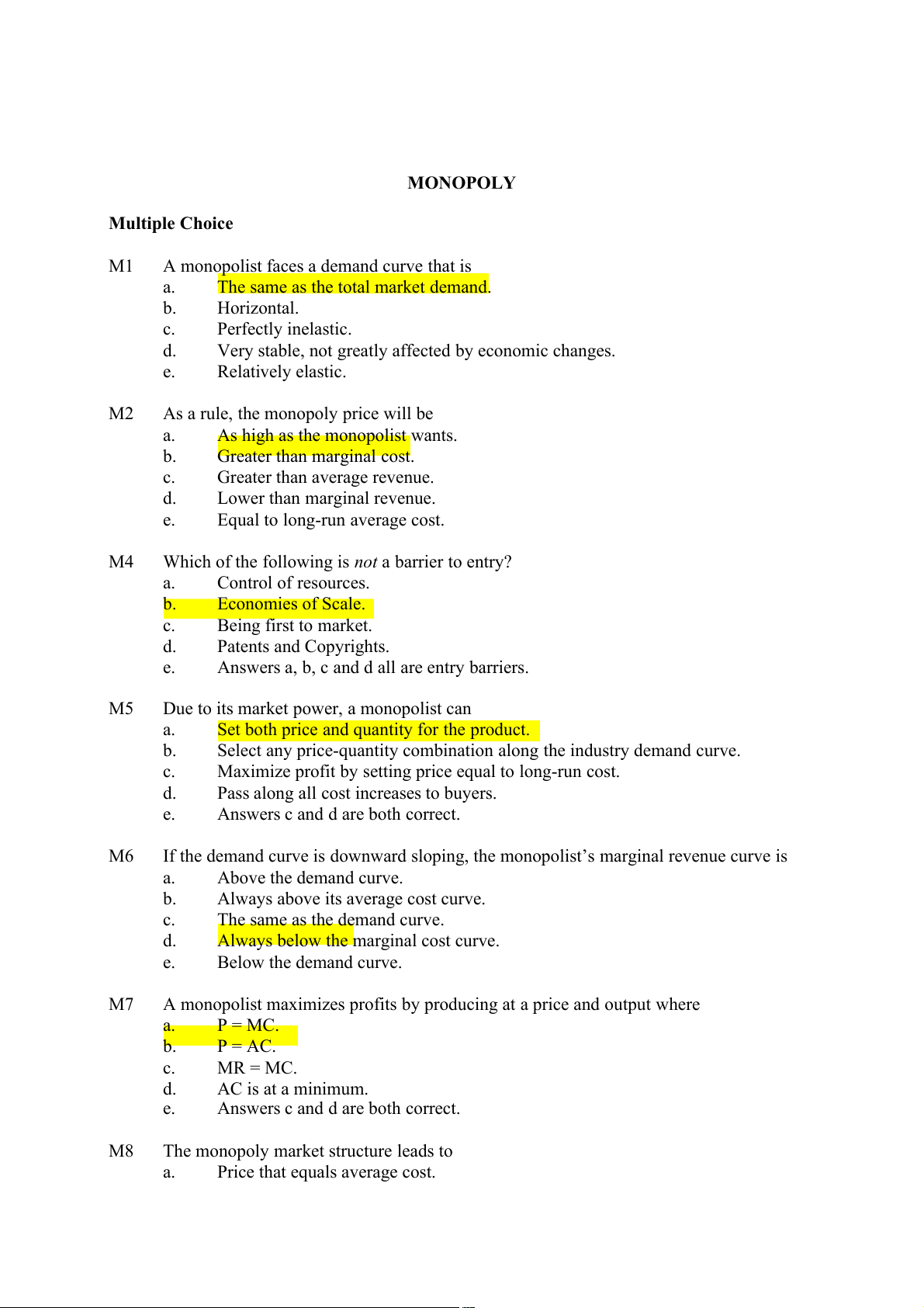 MONOPOLY Multiple Choice M1