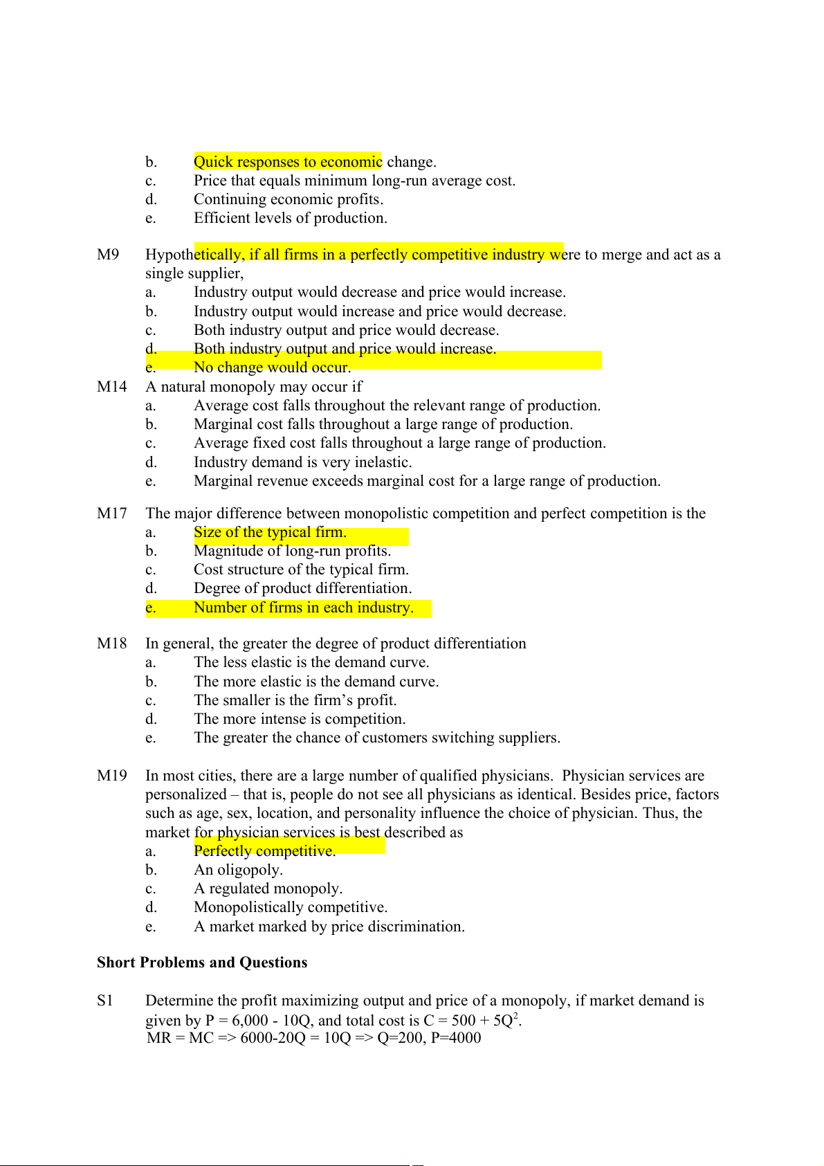 Both industry output and price would increase. e. No change would occur. M14