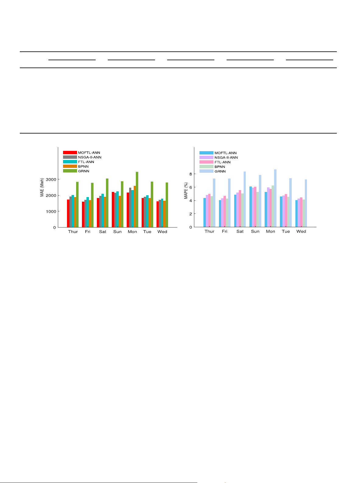 region and 4.20%, 4.16%, 1.14% and 21.85% MAPE values for ERCOT region over NSGA-II-ANN, FTL-ANN, BPNN, and GRNN.