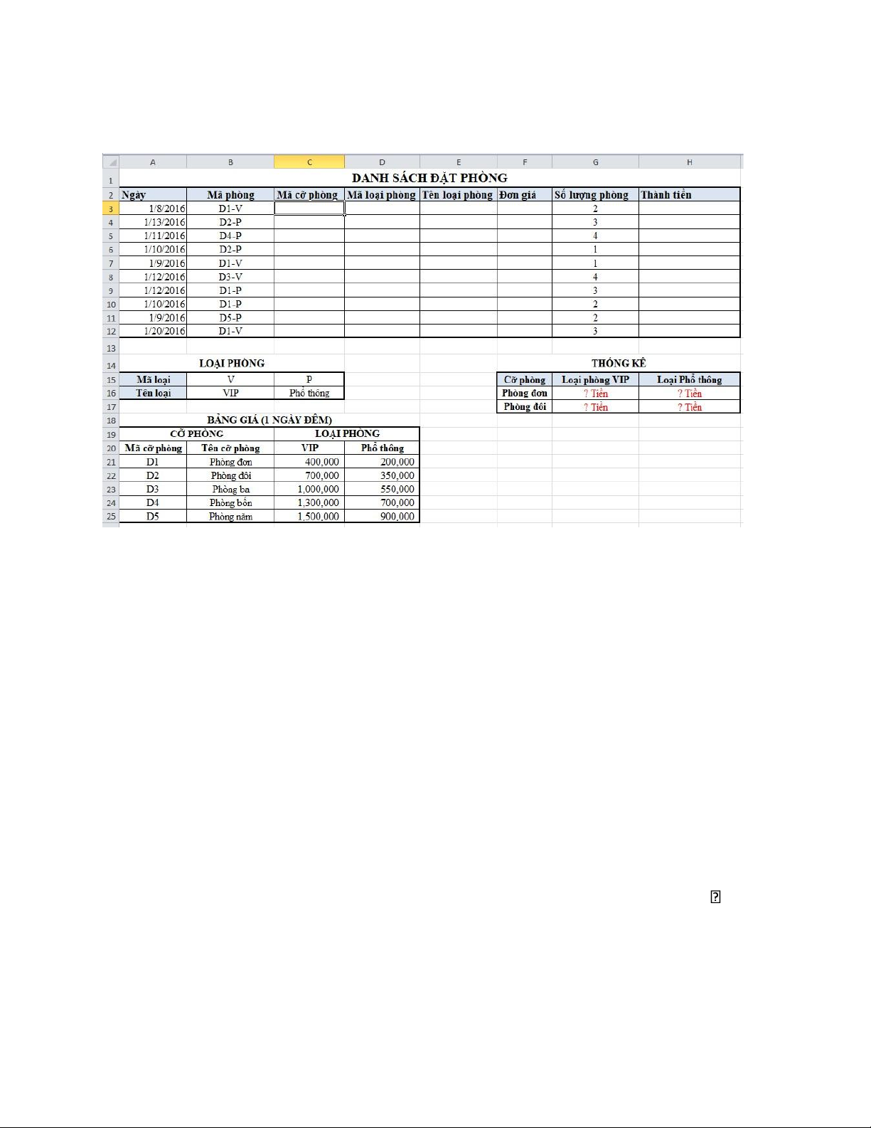 • Thành tiền = Đơn giá * Số lượng phòng. c)