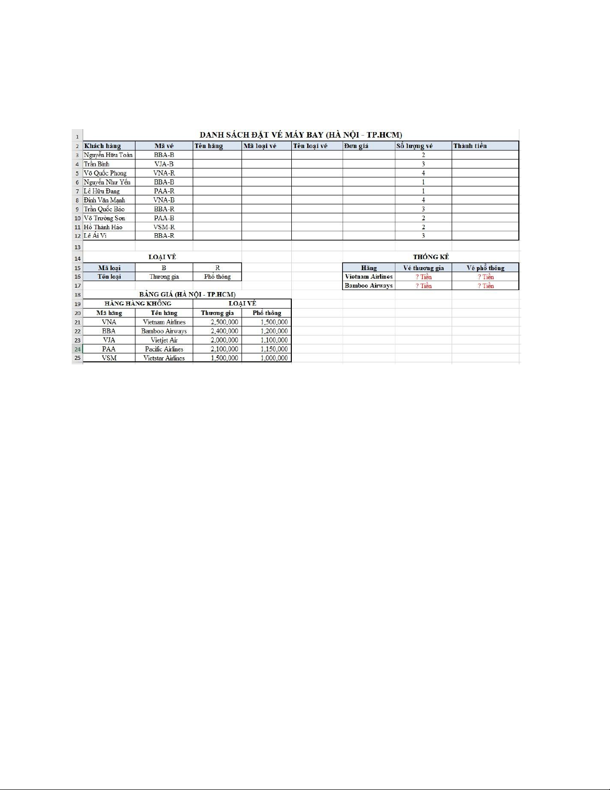 • Hãng Bamboo Airways mỗi loại vé (Thương gia, Phổ thông) được bao nhiêu tiền vé? lOMoAR cPSD| 58707906 BÀI 5