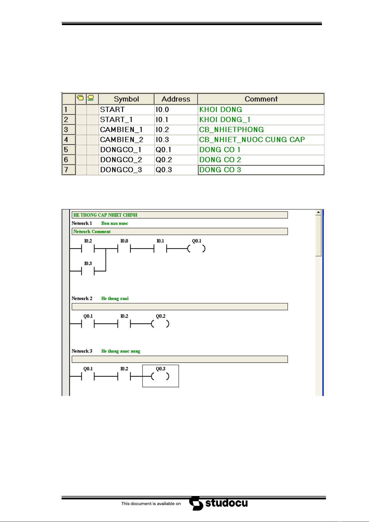 dâng lên tiếp đến cảm biến nhiệt độ tạo hệ thống nước nóng Q0.3. b.Phân bố đầu/vào: