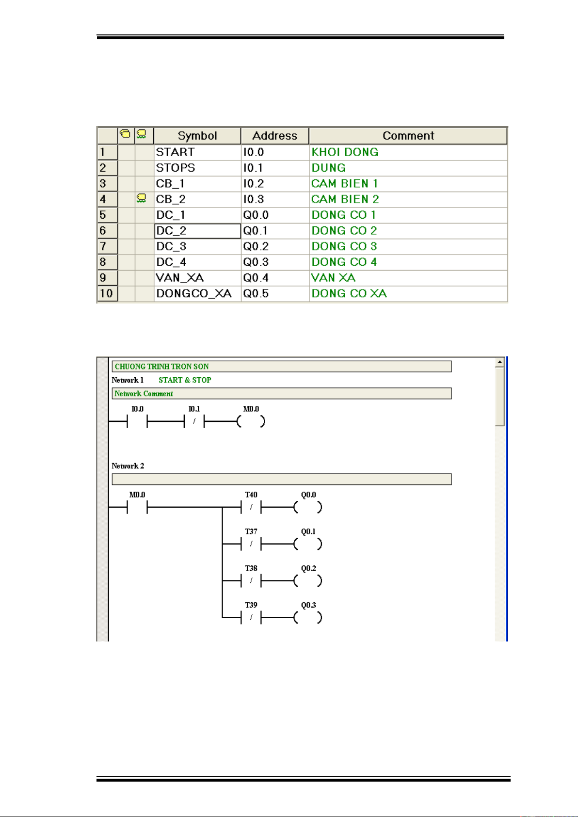 Màu sơn được tạo bởi 3 màu cấp bởi 3 động cơ Q0.1, Q0.2,