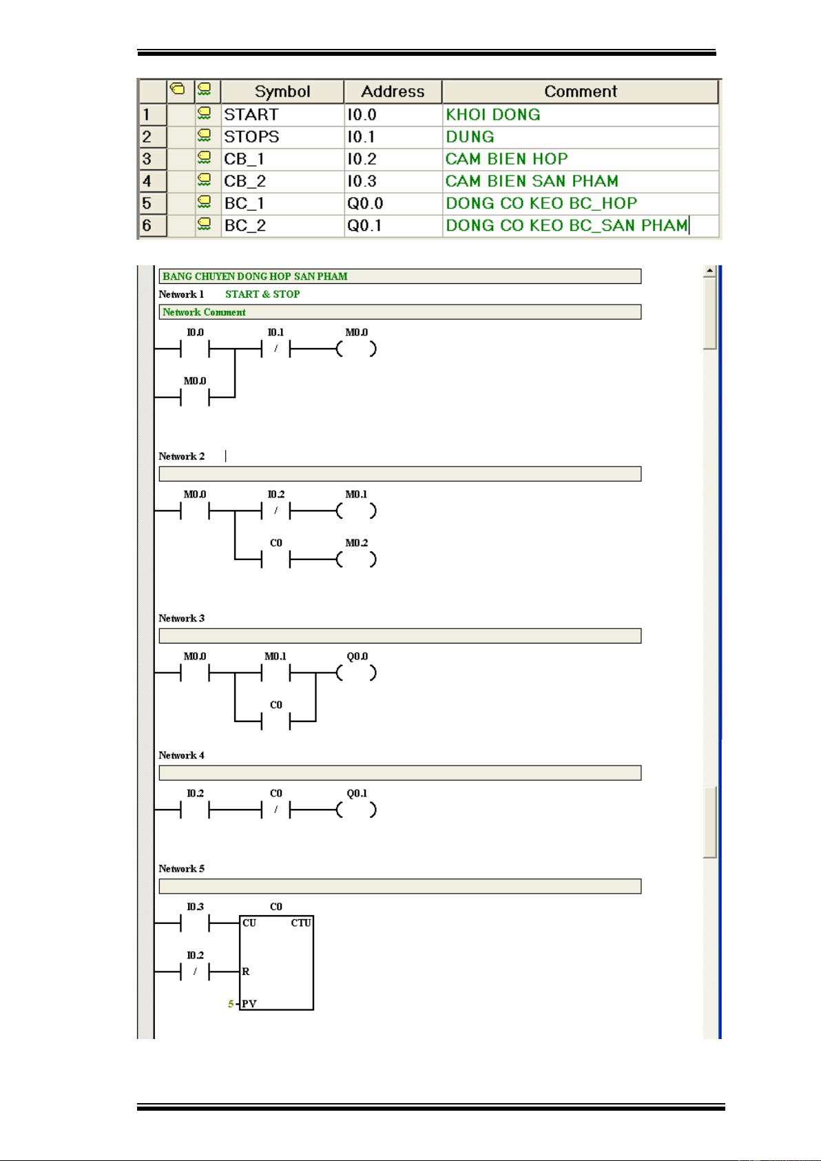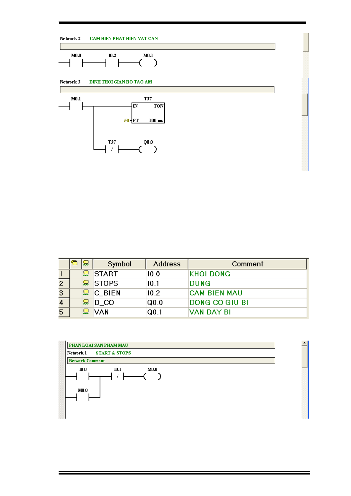 trên băng tải thì cảm biến màu đen I0.2 tác động đến van Q0.1