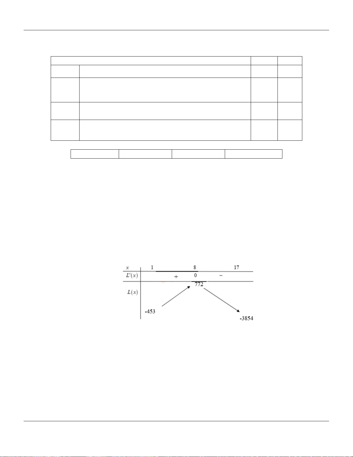 − x +18x + 240, L(x) = 0 x = −5 (loại) hoặc x = 8 Ta có bảng biến thiên: