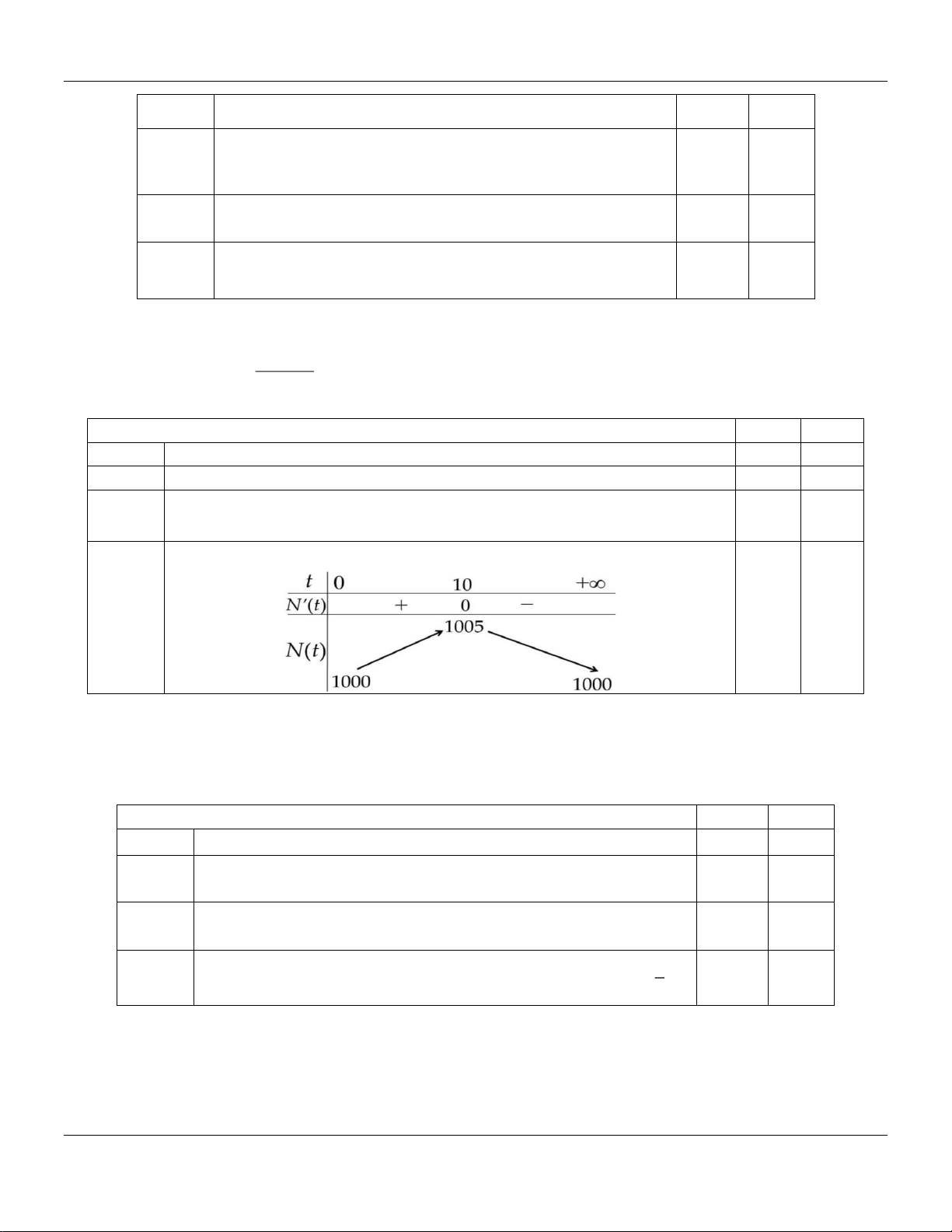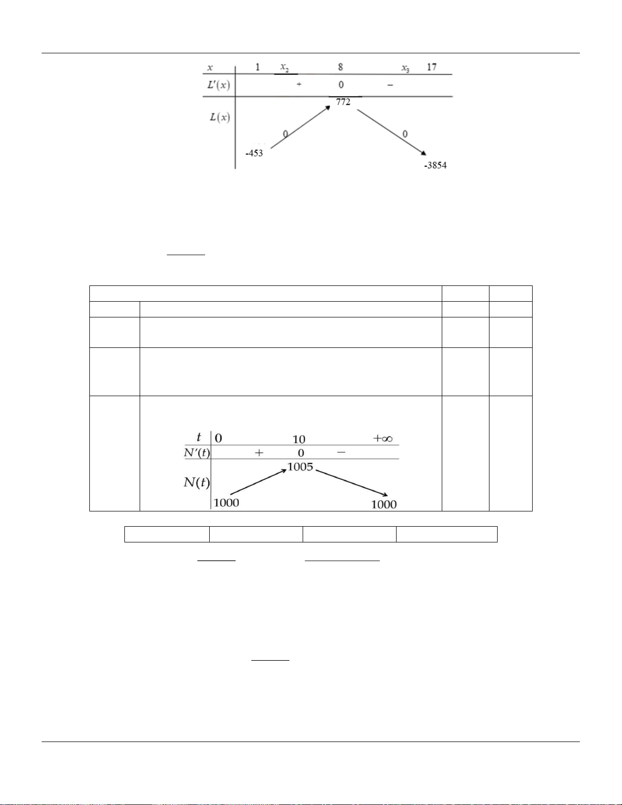 Bảng biến thiên của hàm số N (t ) trên sẽ như hình dưới đây: Câu 5: