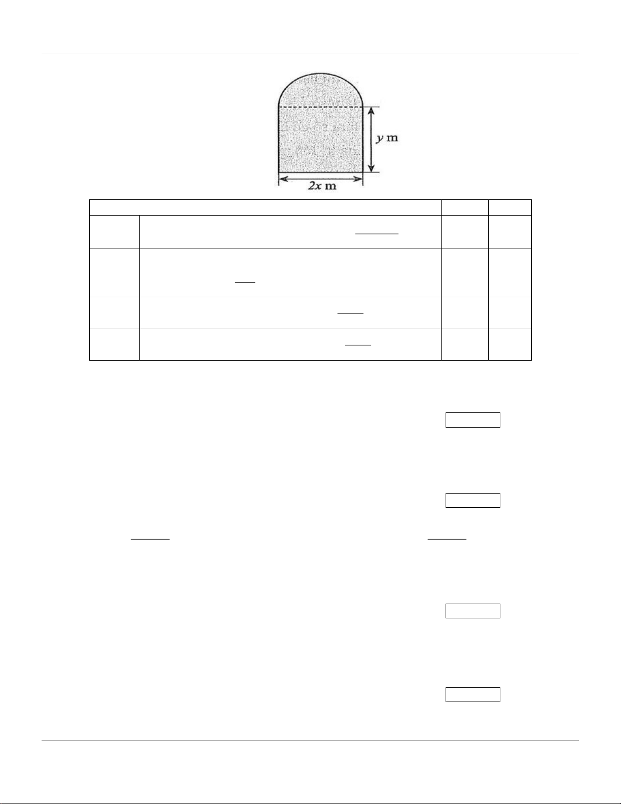 Giá trị lớn nhất của diện tích cửa sổ là ( 2 m ) + . 4 Câu 7: