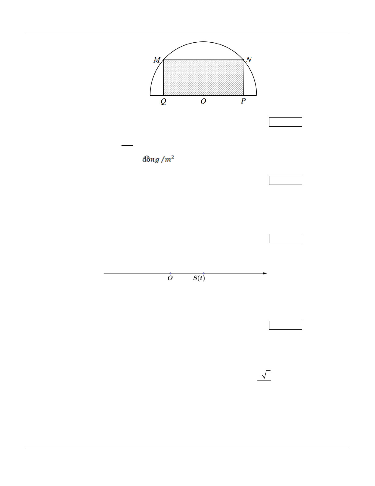 Câu 11: Một tấm nhôm có dạng nửa hình tròn có bán kính R = 3 , người ta muốn cắt ra một hình chữ nhật (như hình vẽ).