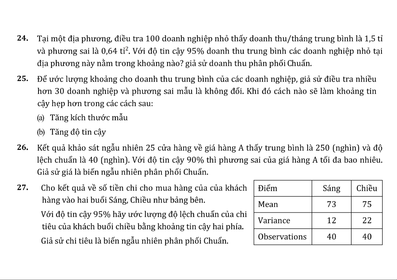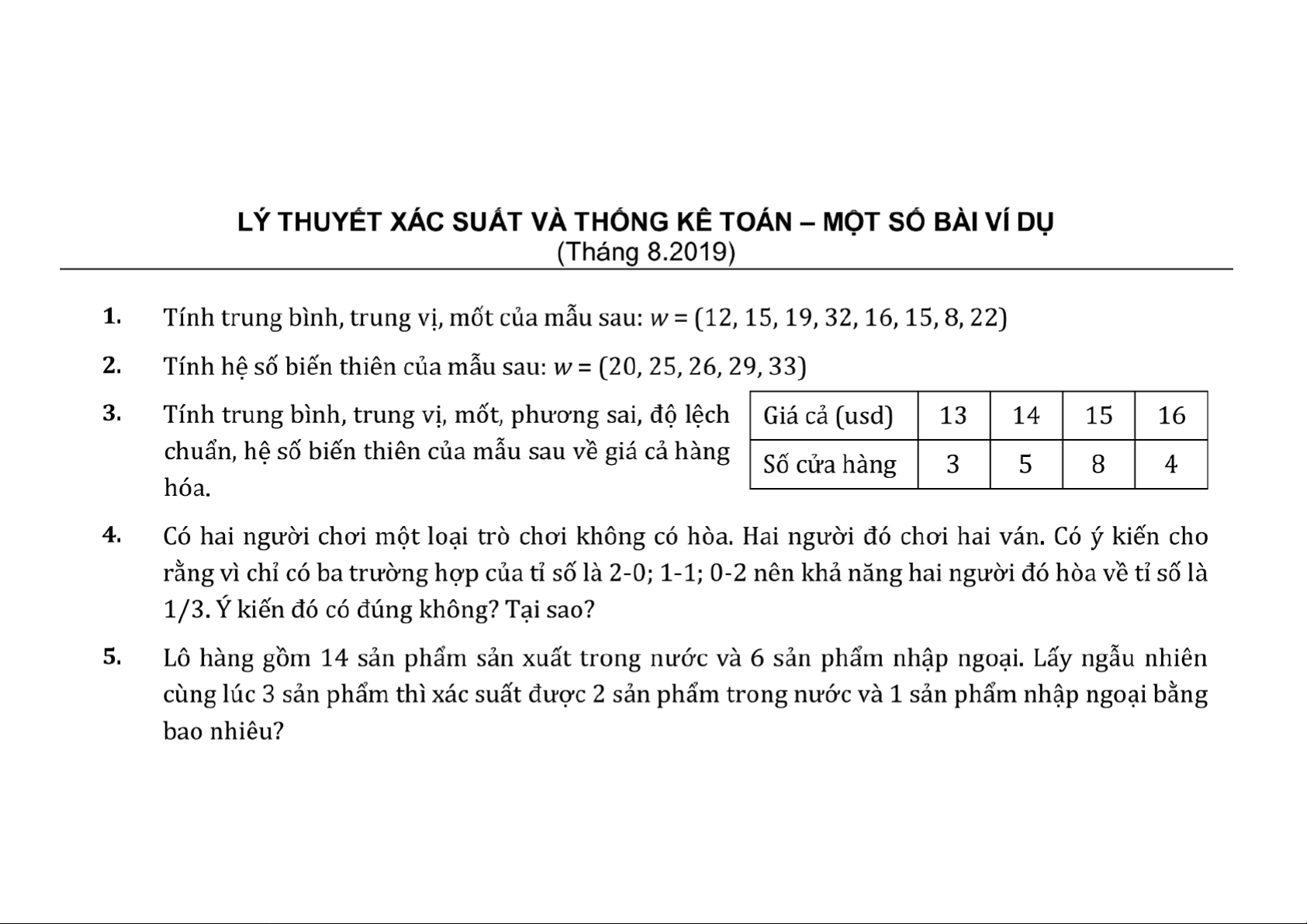 Một số Câu hỏi và bài tập ví dụ thống kê | Thống kê trong kinh tế và kinh doanh | Trường Đại học Kinh tế Quốc dân