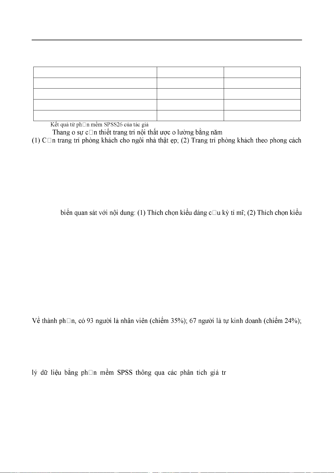 trí nội thất có thang iểm từ 1-5, trong ó có 192 người (chiếm 70%) ã hài lòng với iểm số 4 và 5.