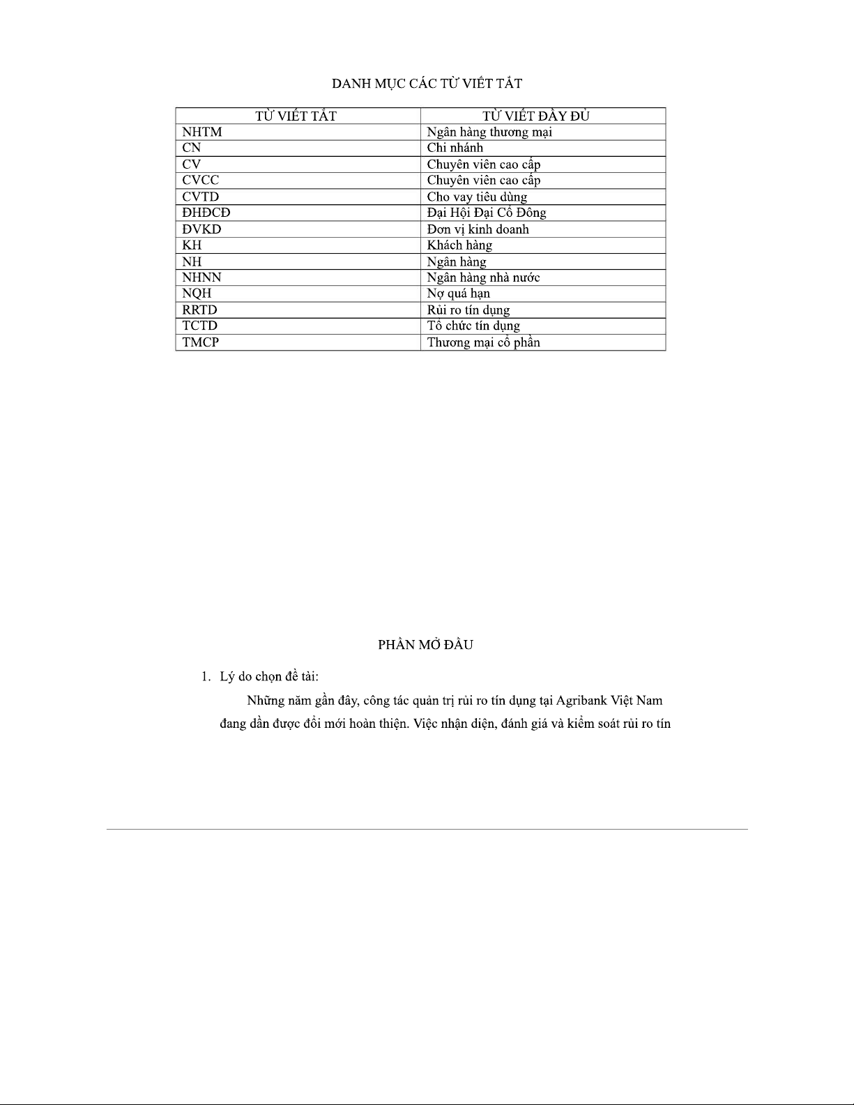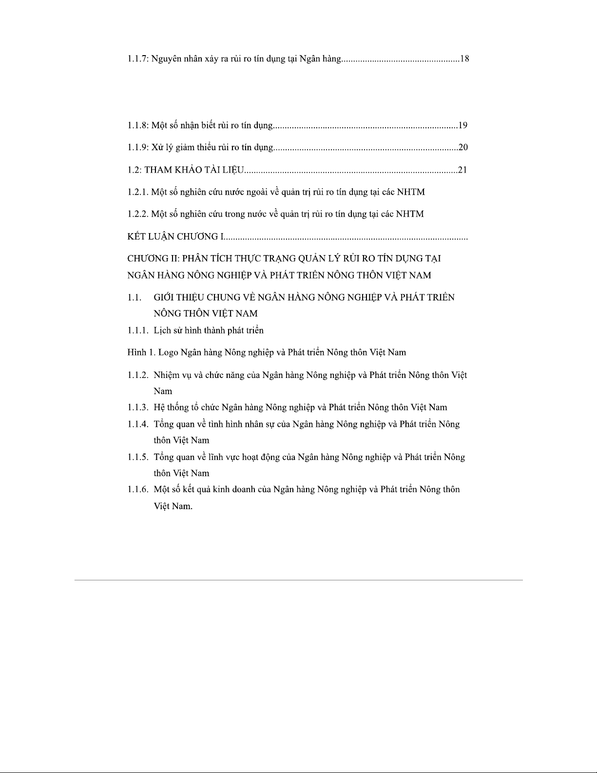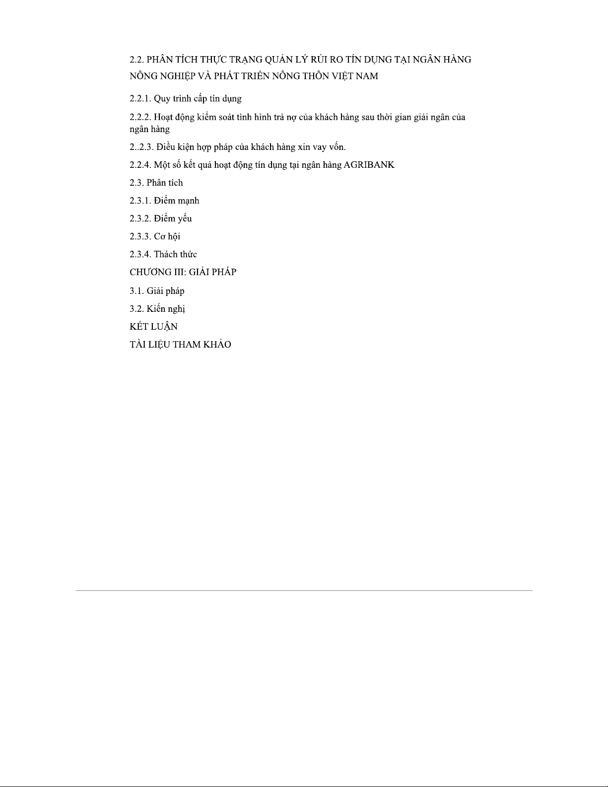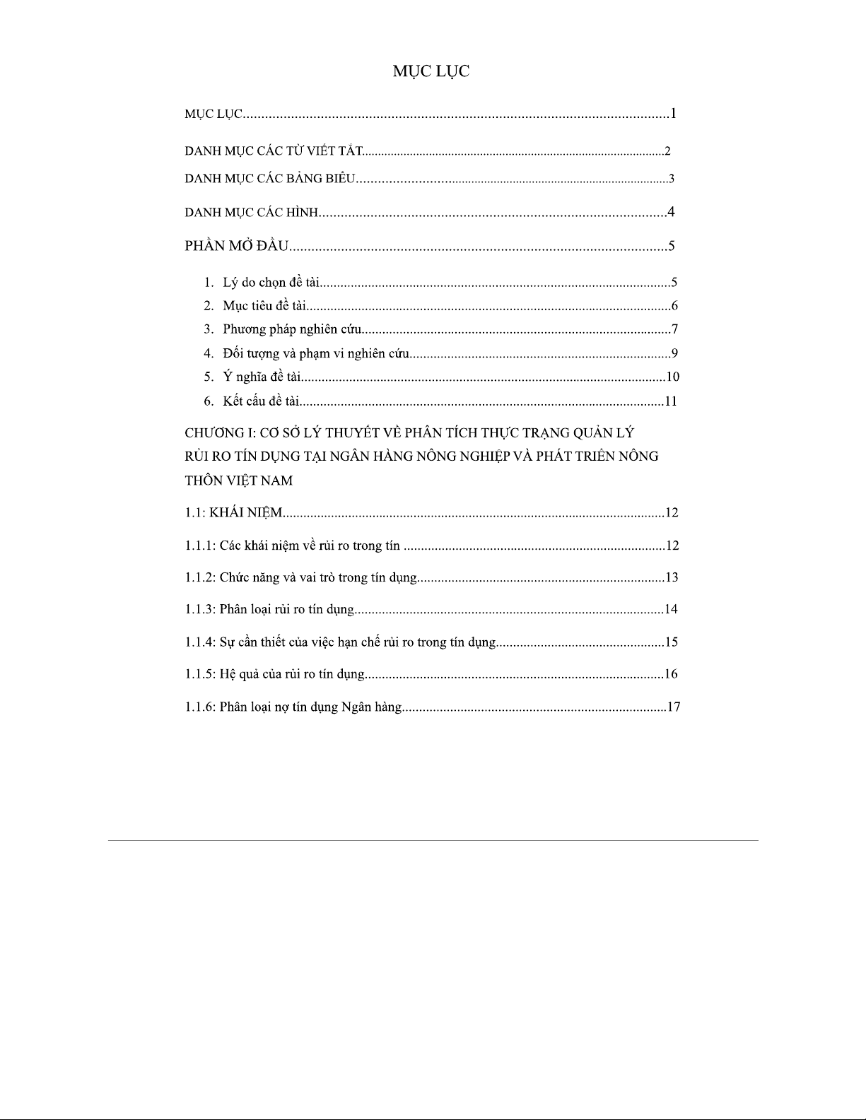 MỤC LỤC TIỂU LUẬN: PHÂN TÍCH RỦI RO TÍN DỤNG TẠI AGRIBANK