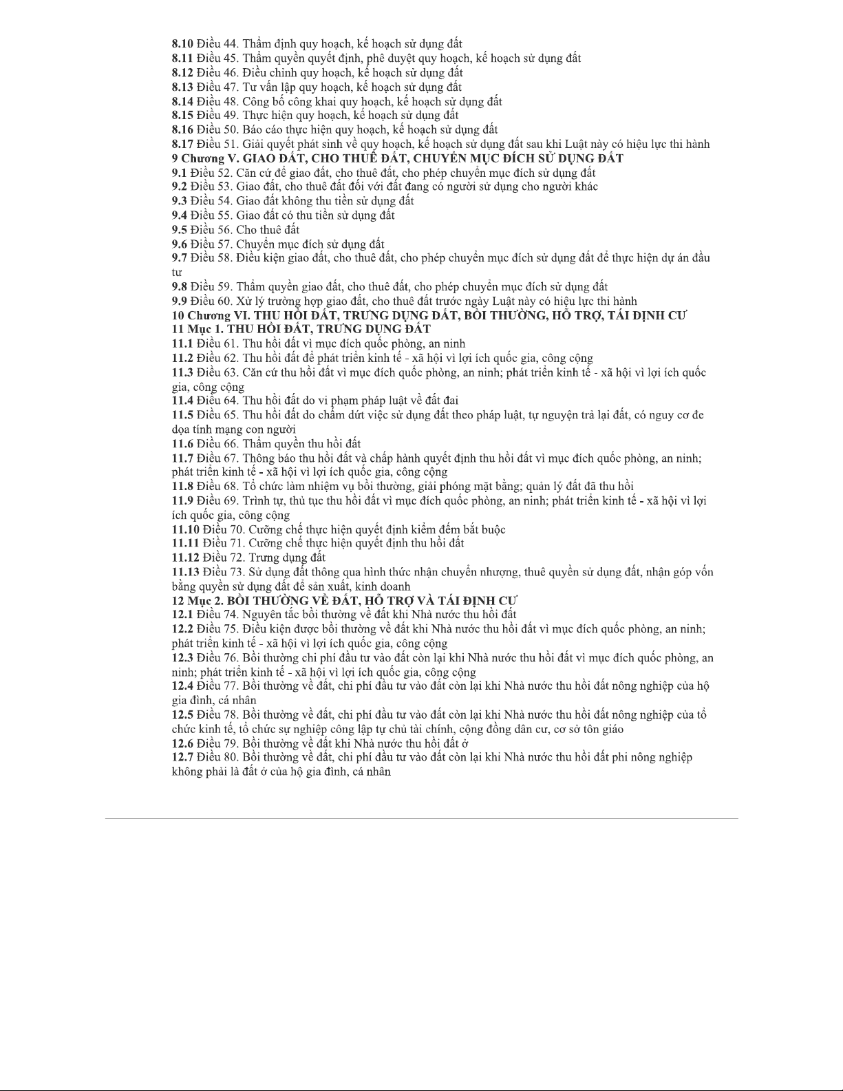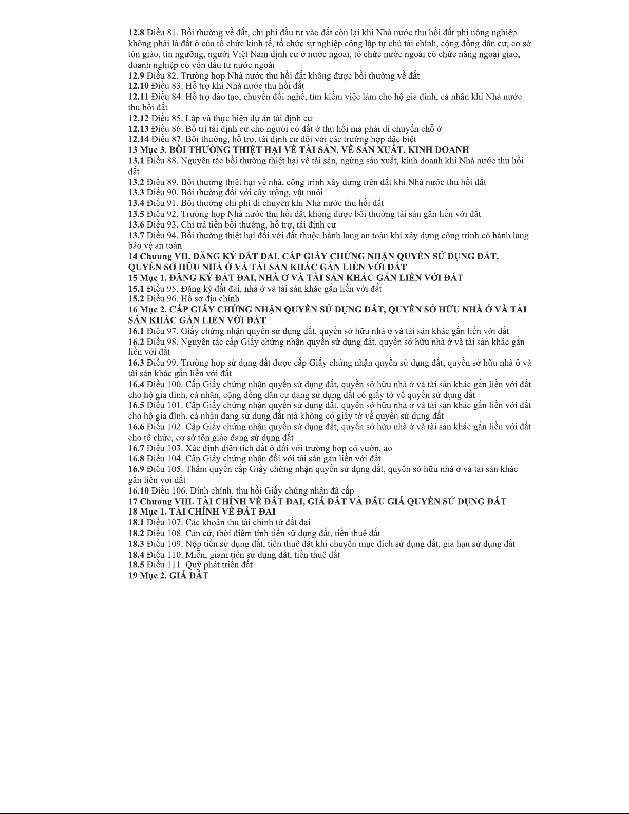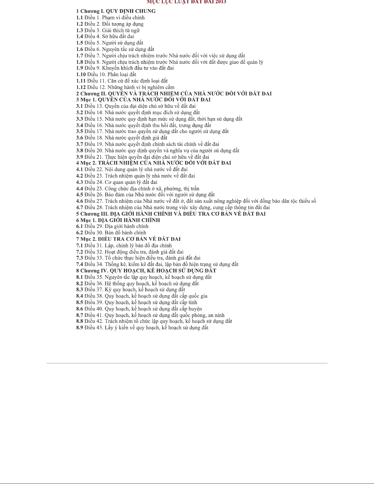 MỤC LỤC VỀ LUẬT ĐẤT ĐAI 2013 - CÁC CHƯƠNG VÀ NỘI DUNG CHÍNH