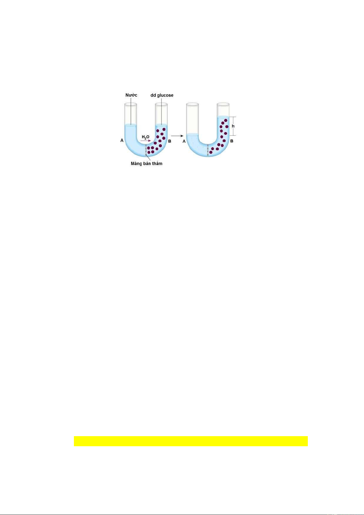 (1) Dung dịch đường 20% tiếp xúc với dung dịch muối ăn 0,9% qua màng bán thấm