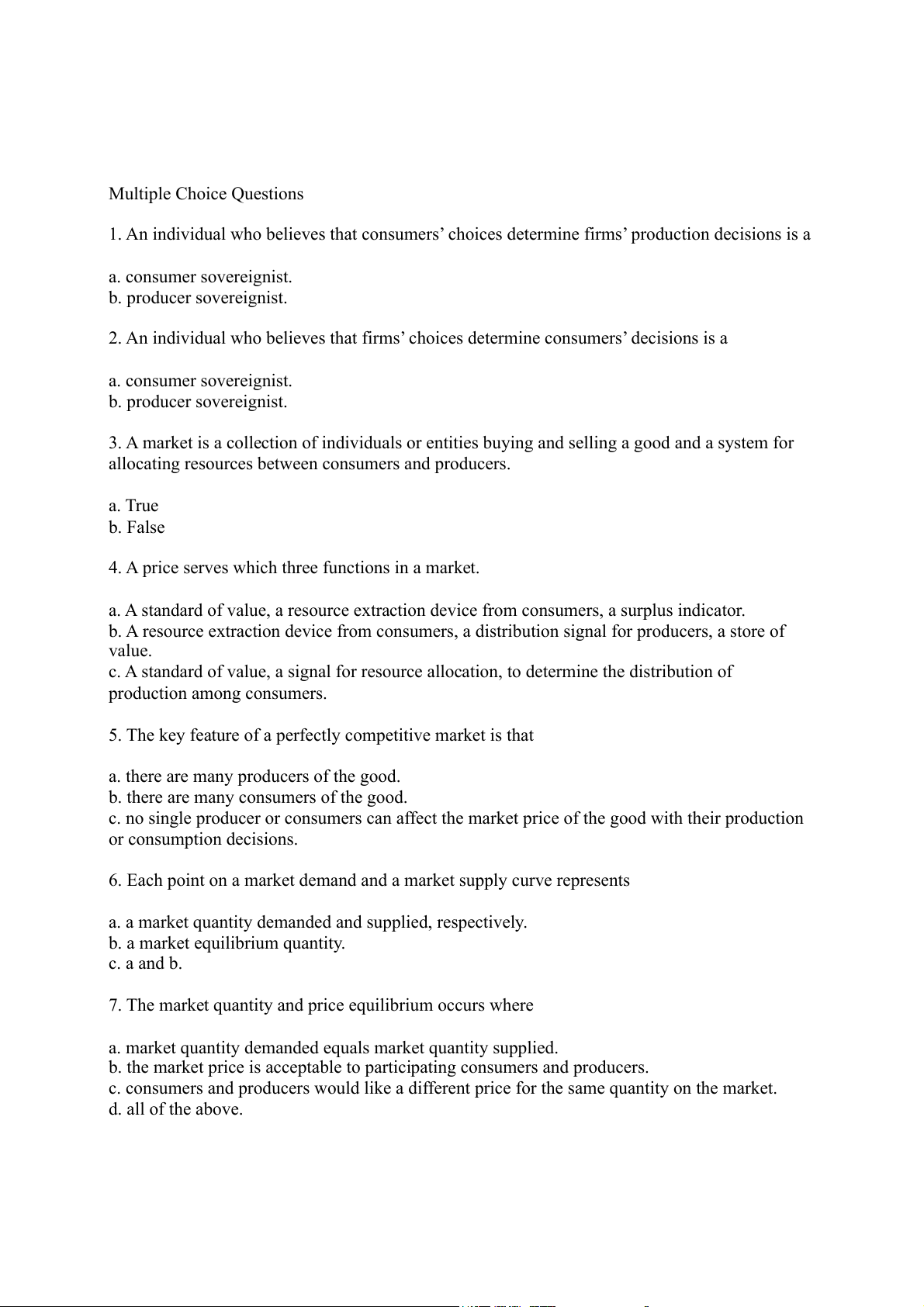2. An individual who believes that firms’ choices determine consumers’ decisions is a a. consumer sovereignist. b. producer sovereignist.