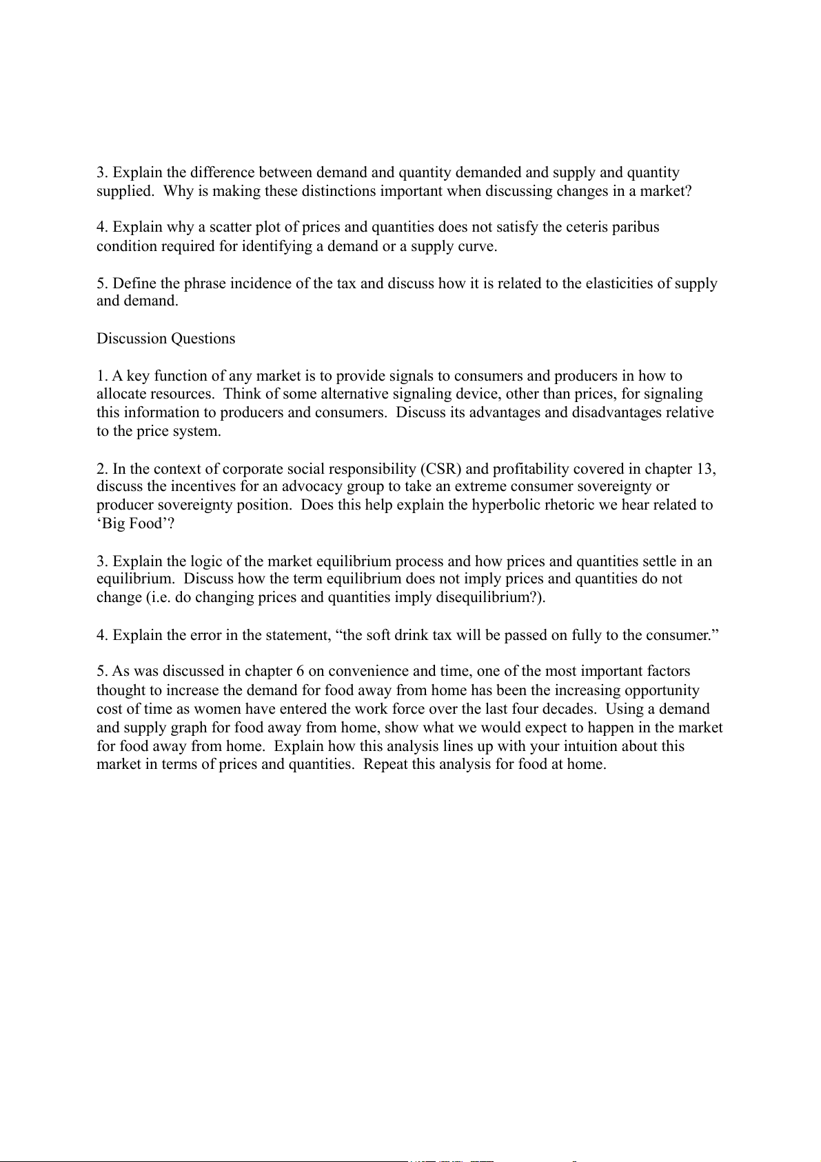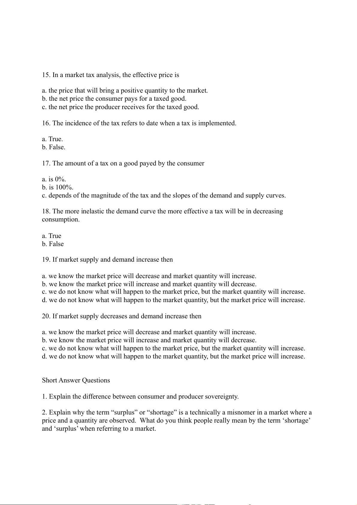 d. we do not know what will happen to the market quantity, but the market price will increase. Short Answer Questions