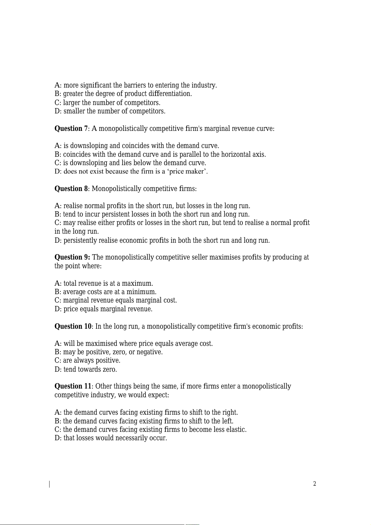 Question 11: Other things being the same, if more firms enter a monopolistically
