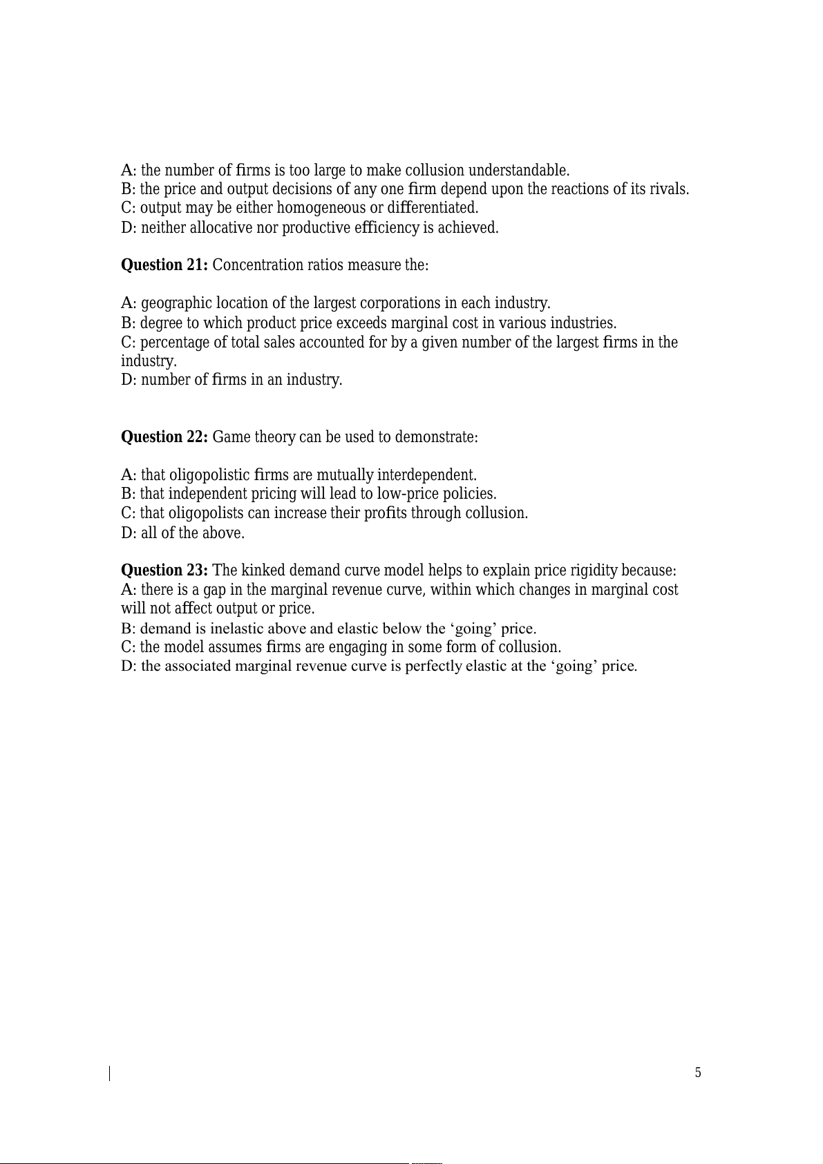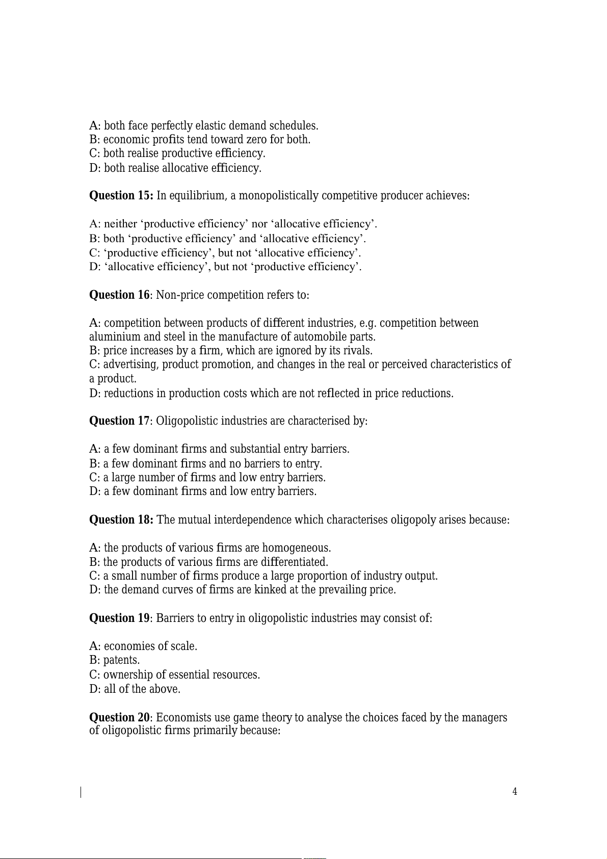 Question 17: Oligopolistic industries are characterised by: