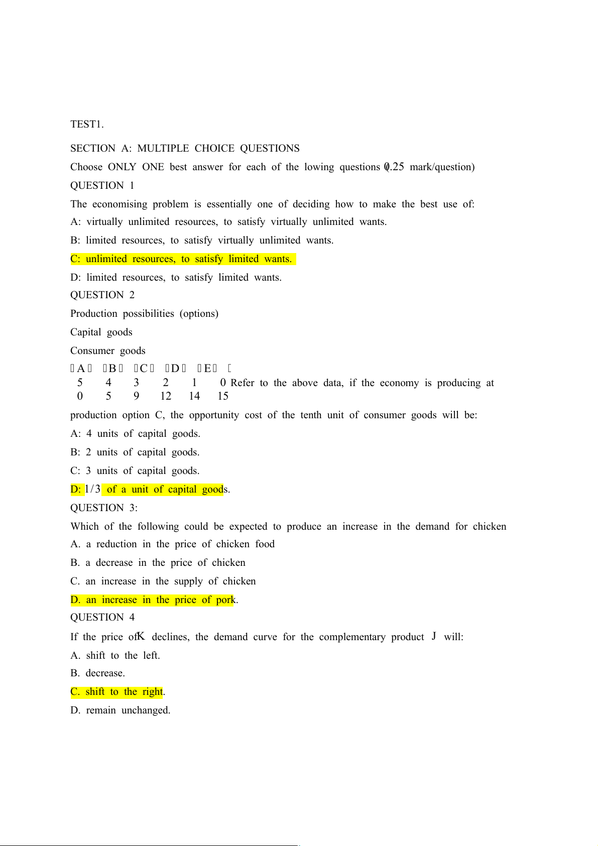 D: limited resources, to satisfy limited wants. QUESTION 2