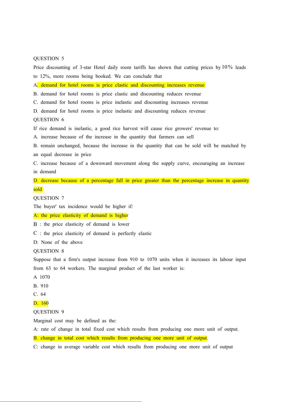 D. demand for hotel rooms is price inelastic and discounting reduces revenue QUESTION 6
