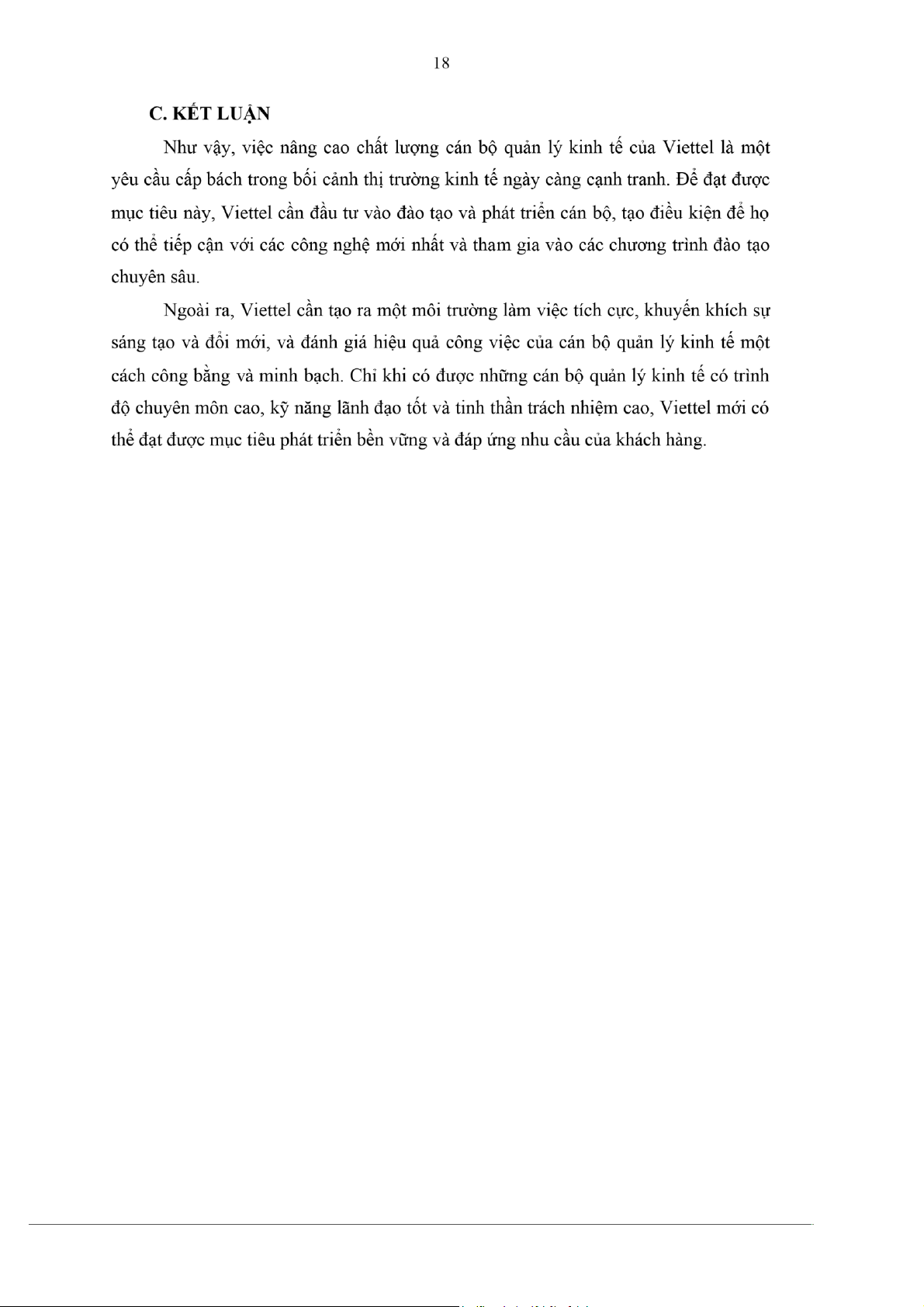 ĐỘI NGŨ CÁN BỘ QUẢN LÝ KINH TẾ TẠI TẬP ĐOÀN VIETTEL 18 KẾT LUẬN 19