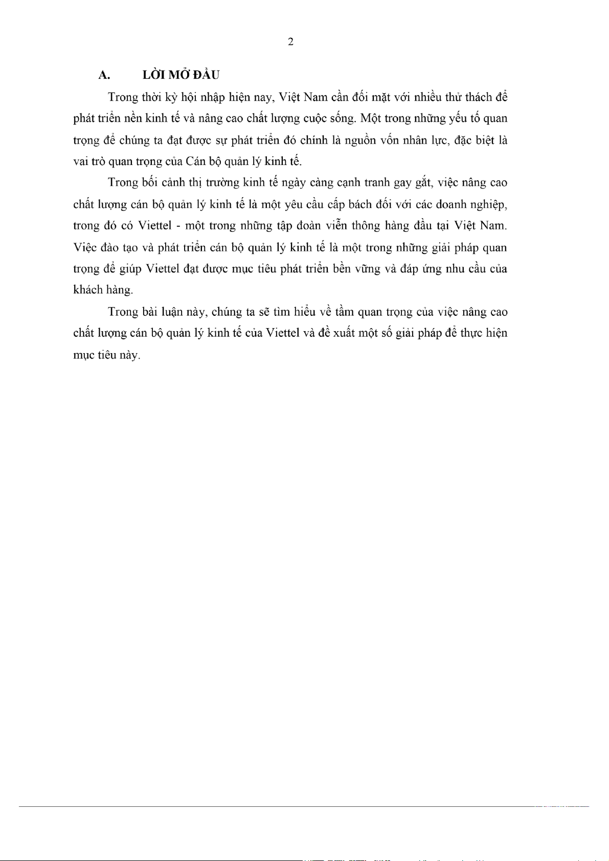 đạo trong đội ngũ cán bộ quản lý kinh tế của Viettel để đáp ứng được nhu cầu phát triển