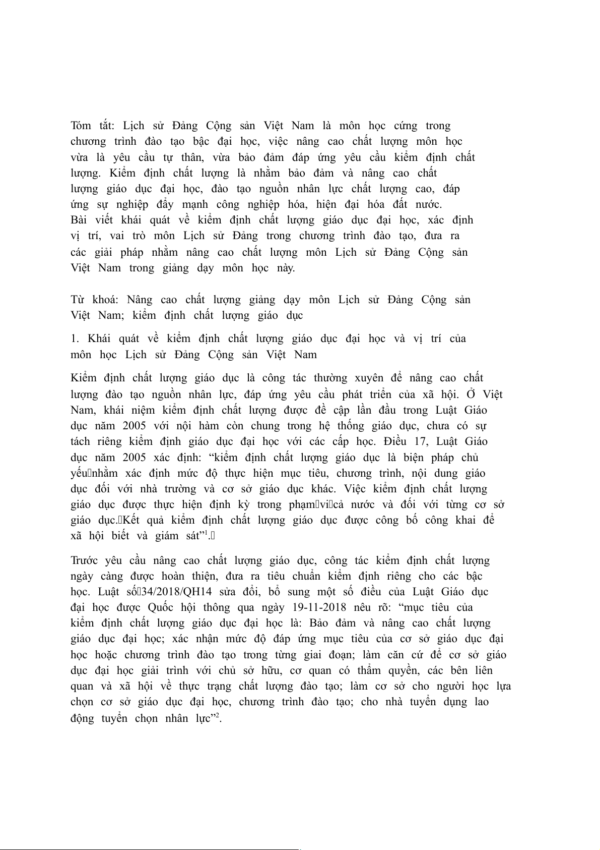 đại học của hệ thống giáo dục đại học Việt Nam. Chất lượng môn Lịch sử