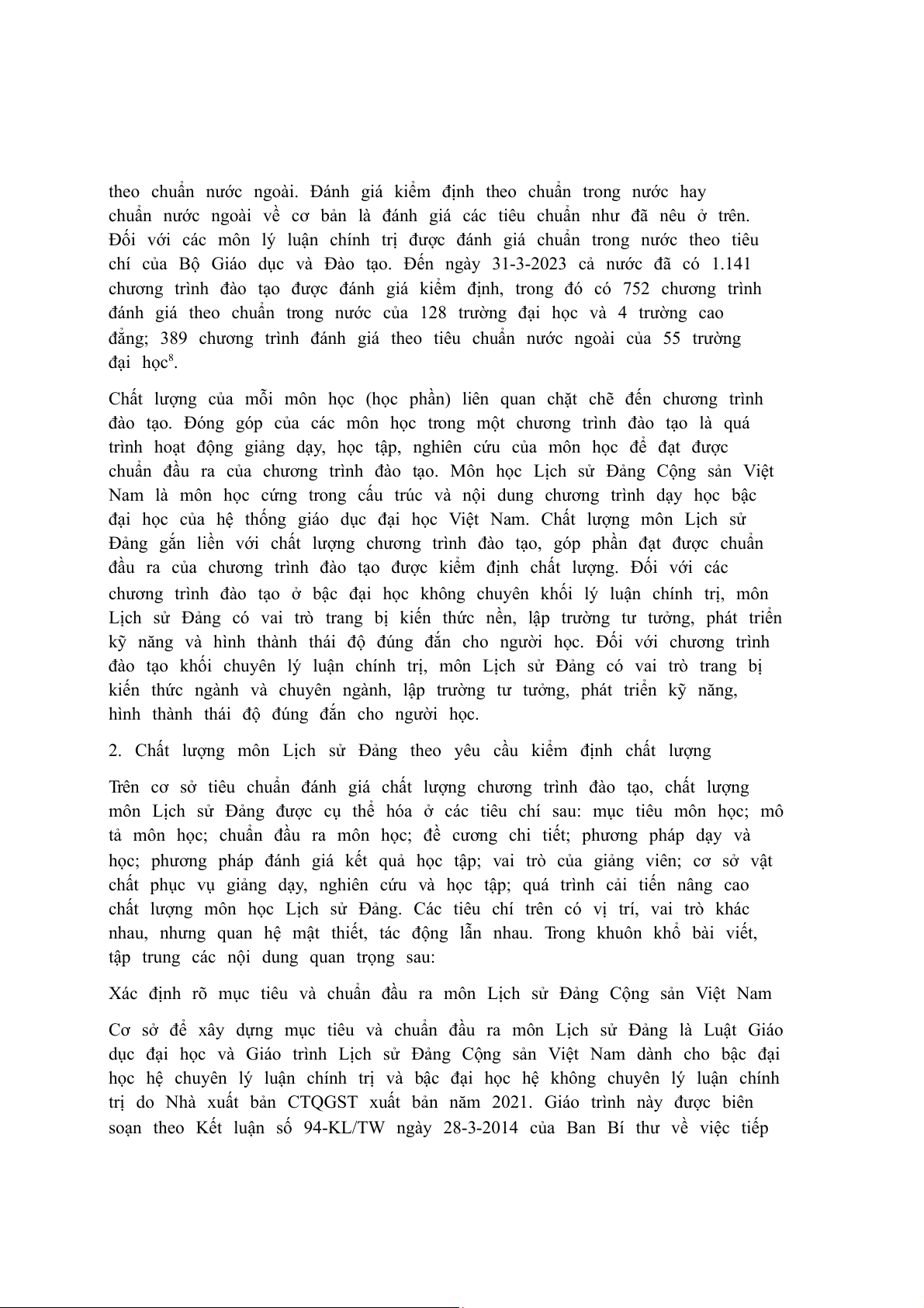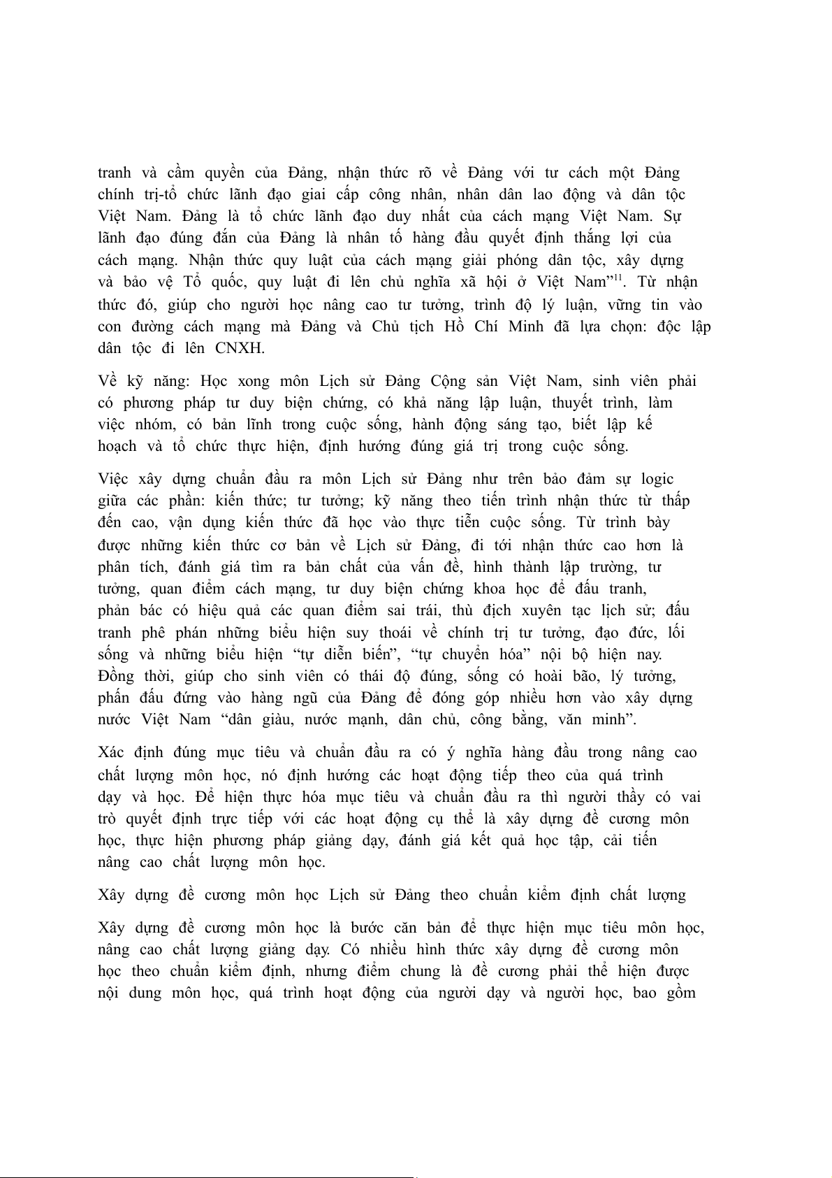 cao chất lượng môn Lịch sử Đảng Cộng sản Việt Nam, đáp ứng yêu cầu kiểm định chất lượng.