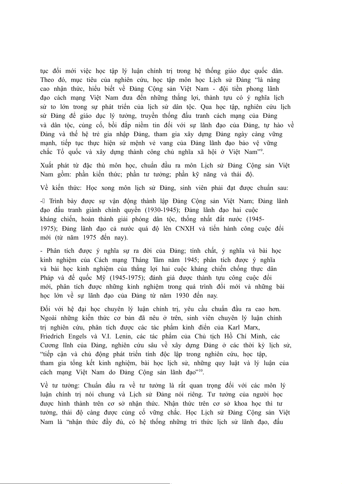 chuẩn đầu ra của chương trình đào tạo. Môn học Lịch sử Đảng Cộng sản Việt