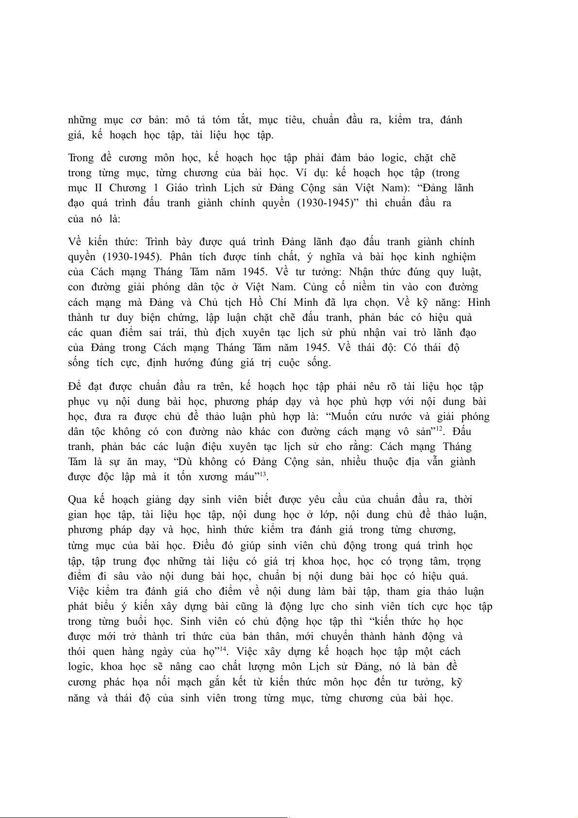 Trong đề cương môn học, kế hoạch học tập phải đảm bảo logic, chặt chẽ