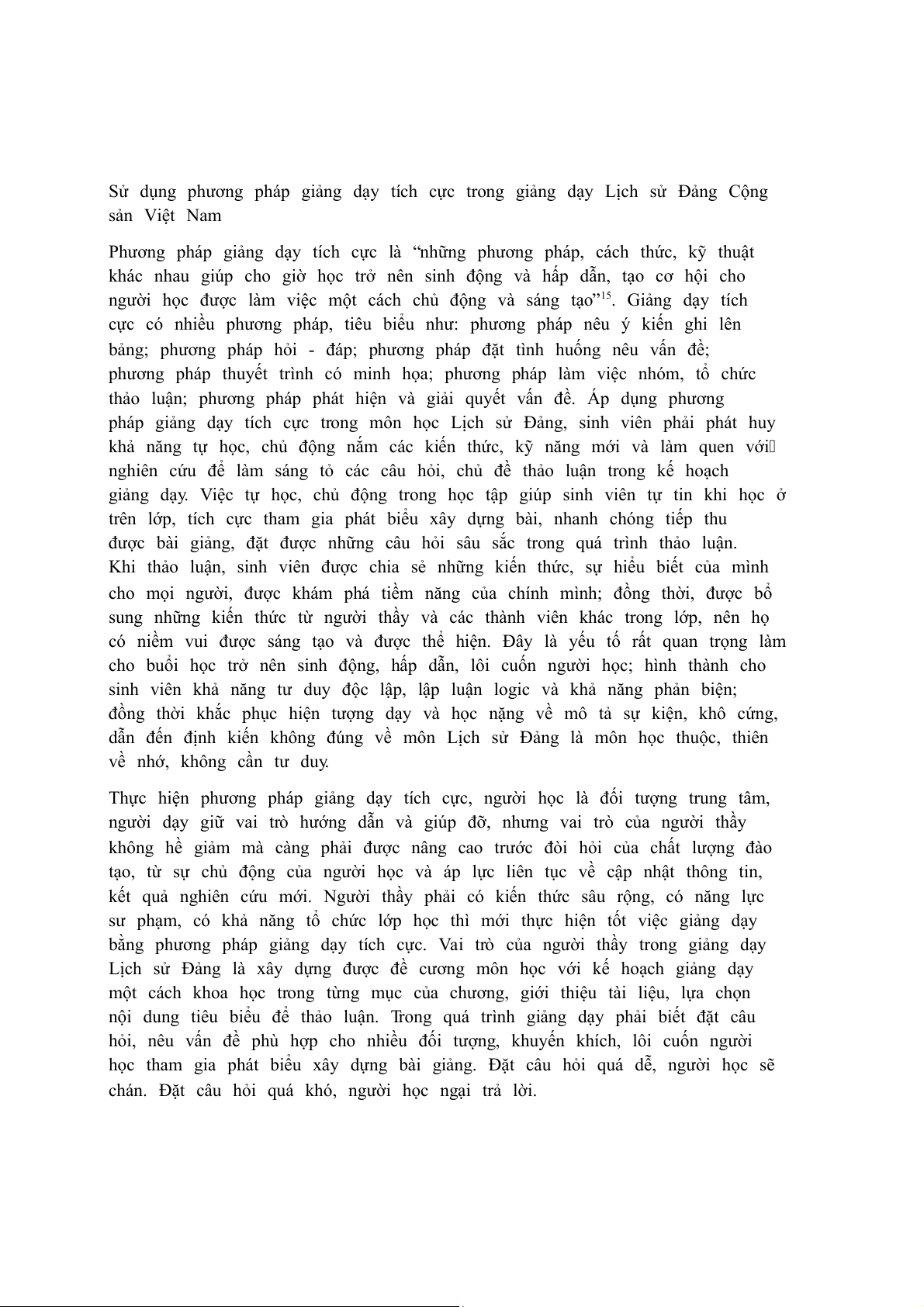 Sử dụng phương pháp giảng dạy tích cực trong giảng dạy Lịch sử Đảng Cộng sản Việt Nam