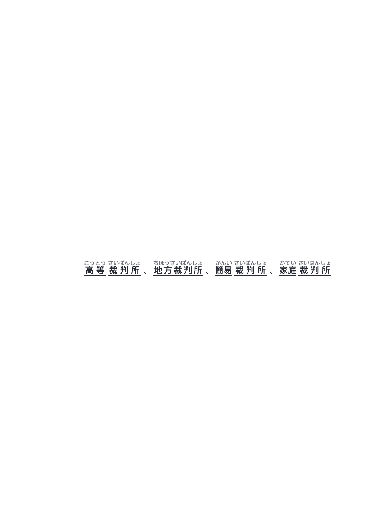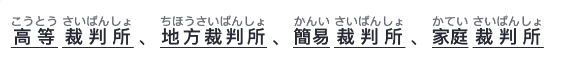 - Các tòa án cấp dưới (高等裁判所, 地方裁判所, 簡易裁判所, 家庭裁判所).