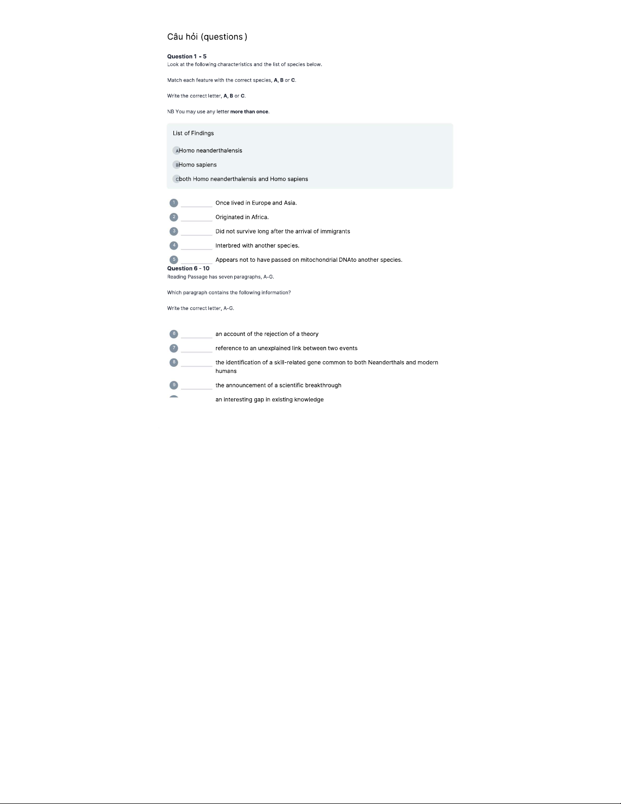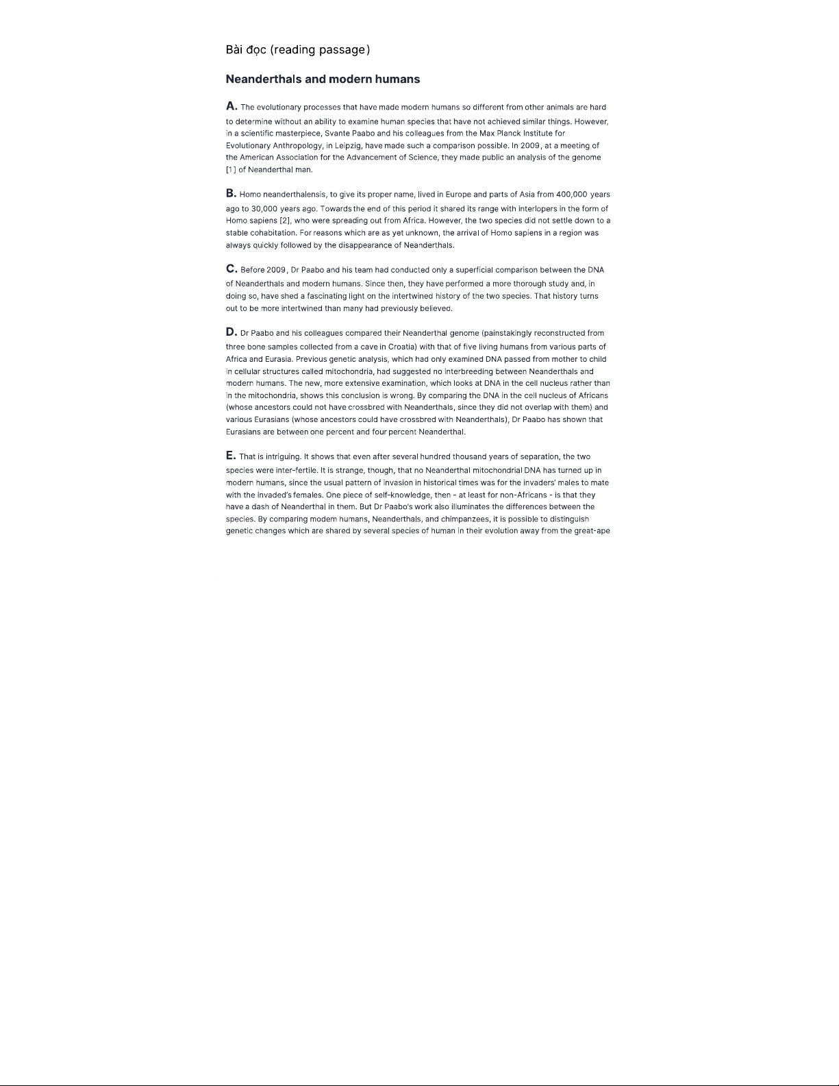 Neanderthals and Modern Humans: Insights from IELTS Reading Practice